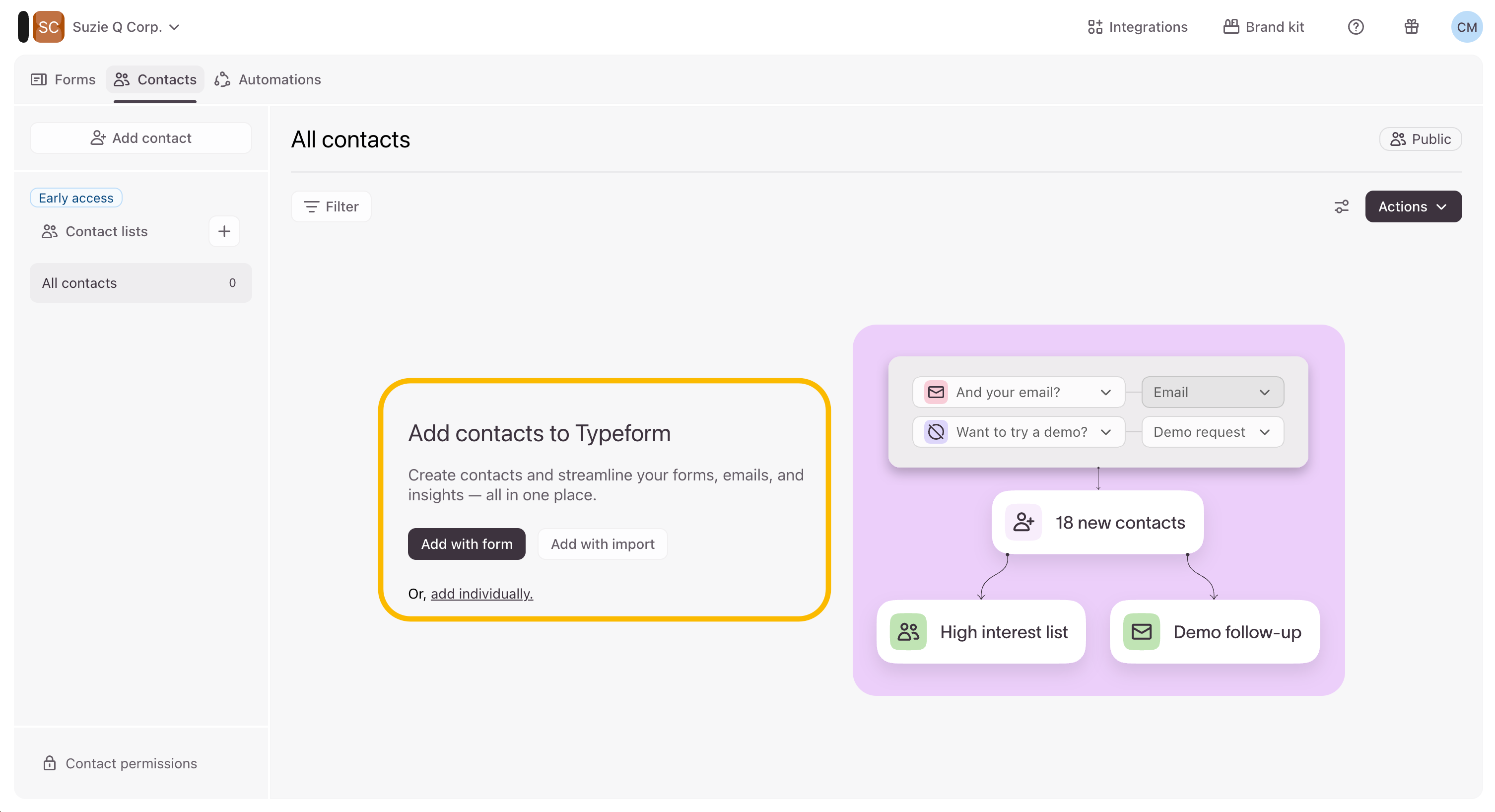 Creating Contacts is available on all Typeform plans. Enterprise customers can activate it by contacting their Customer Success Manager.