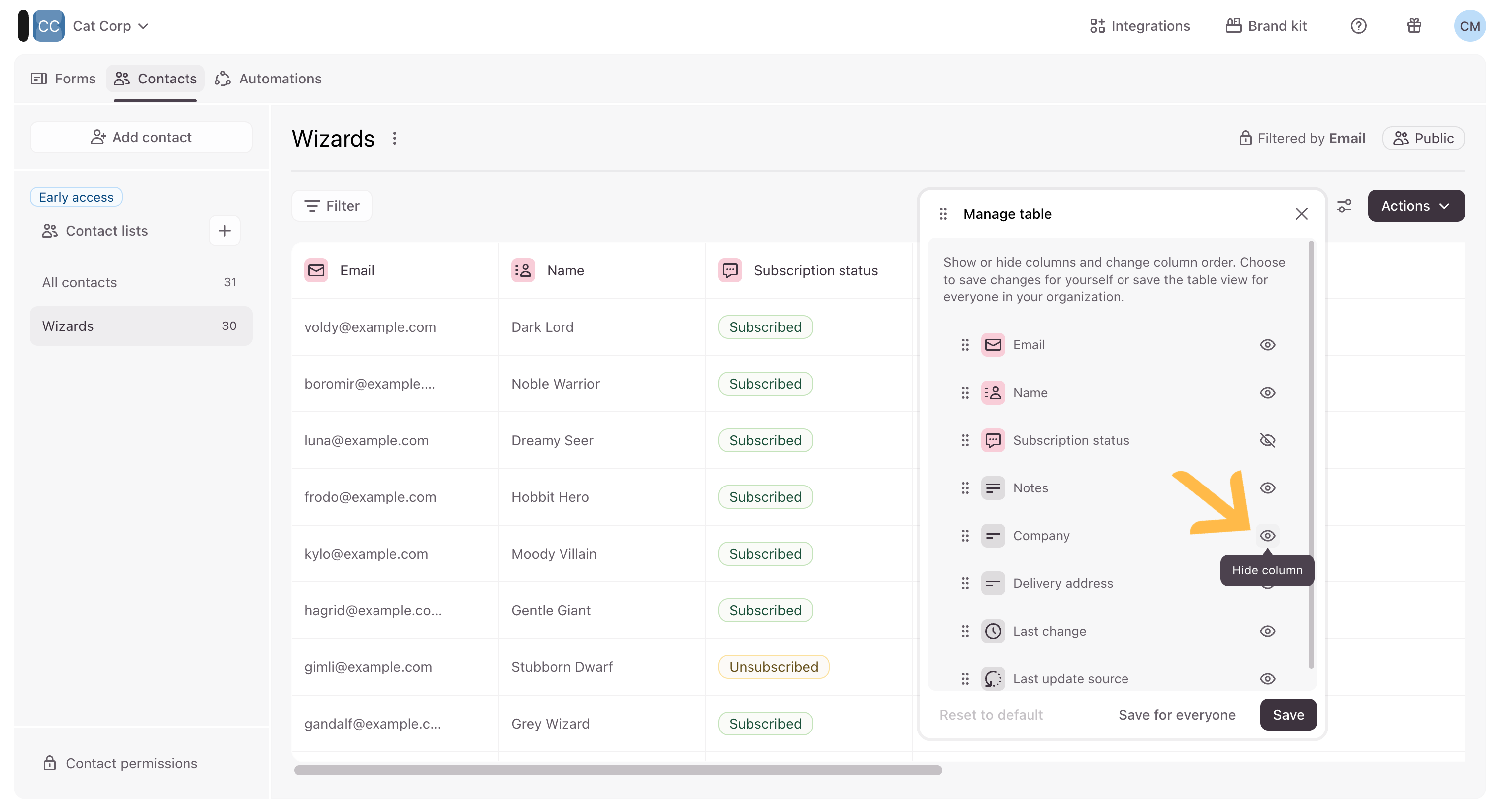 …or hide columns in your list. Find out more about filtering for Contacts and creating Contact list here and here.