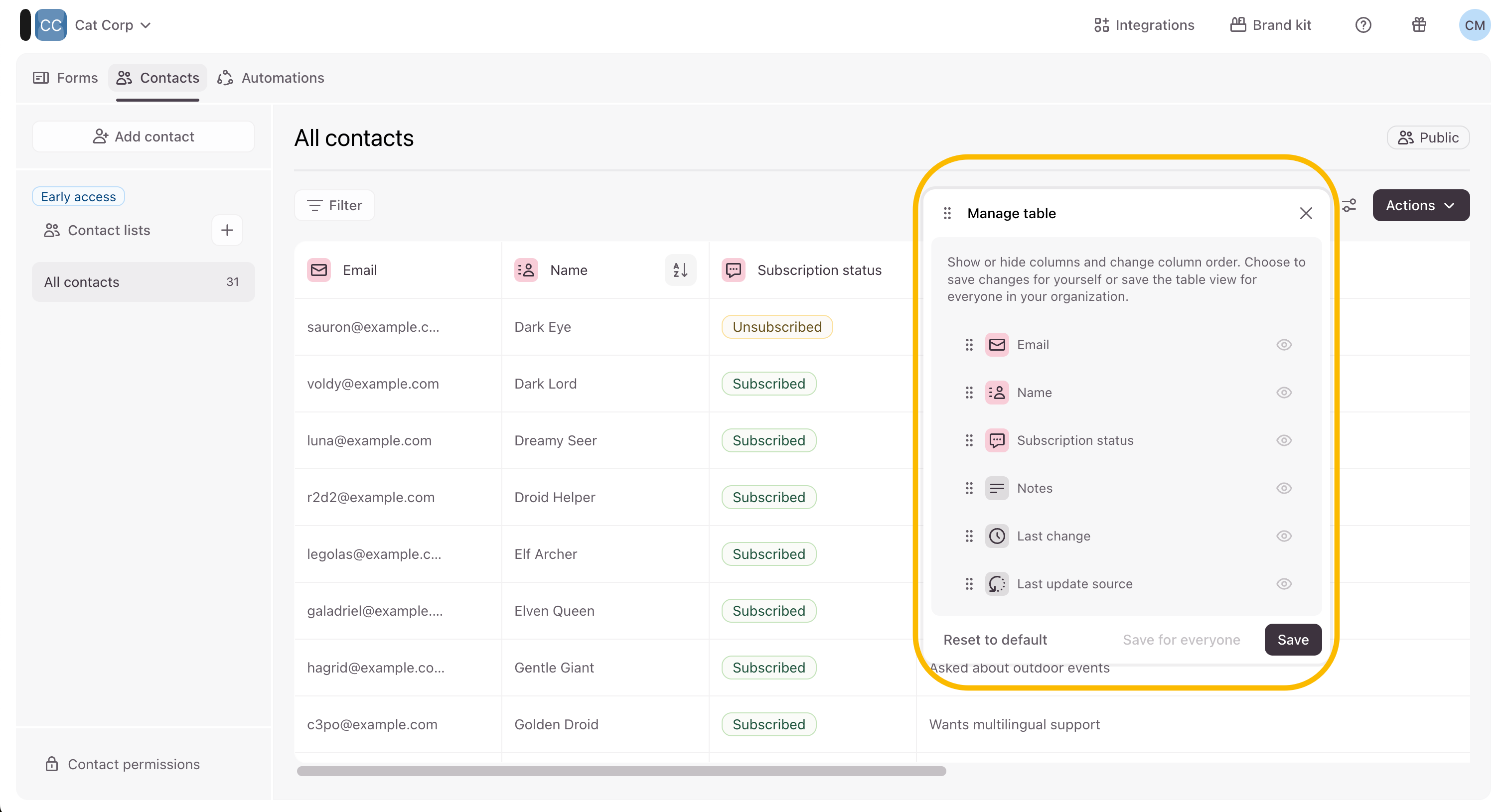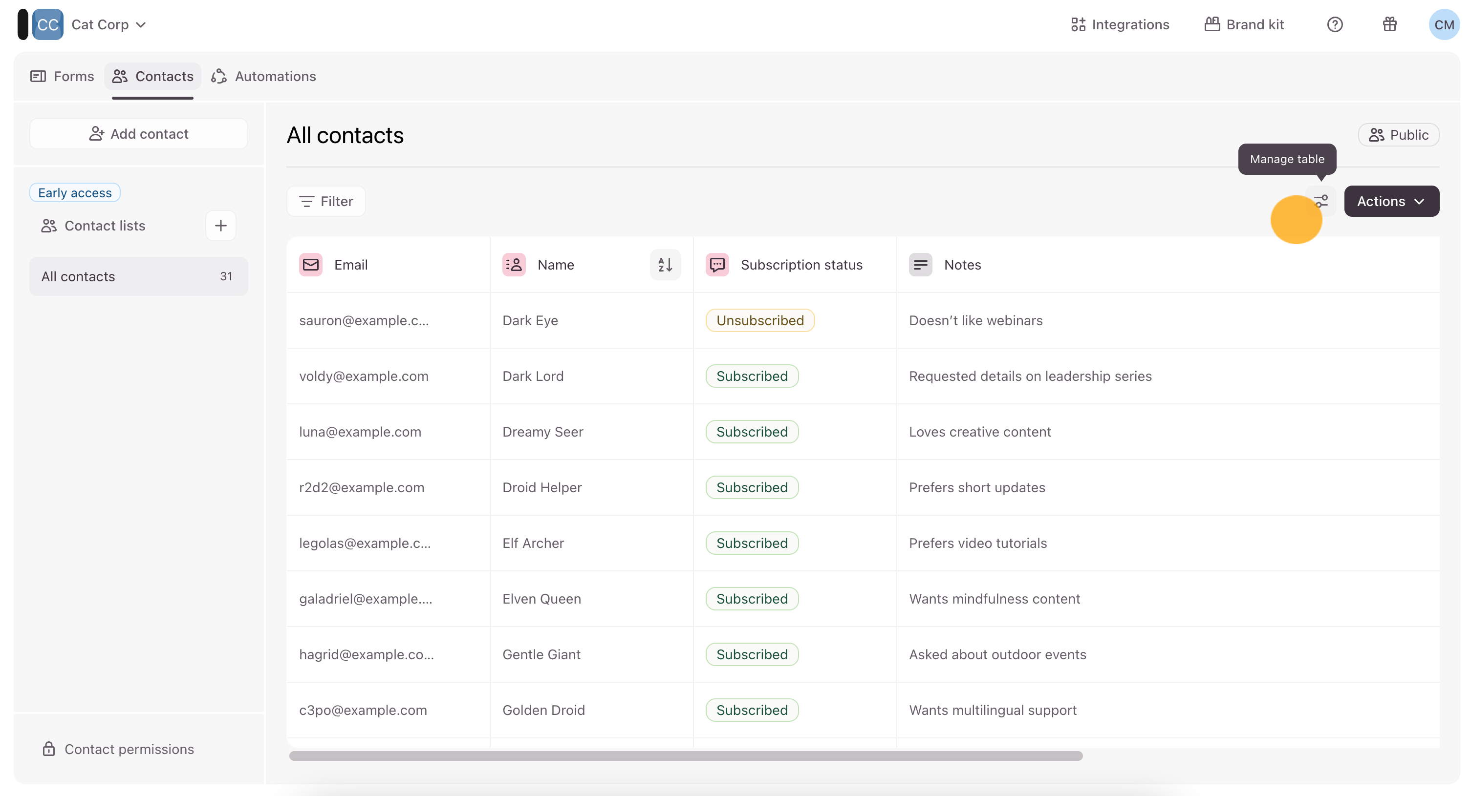 How to manage your contacts table