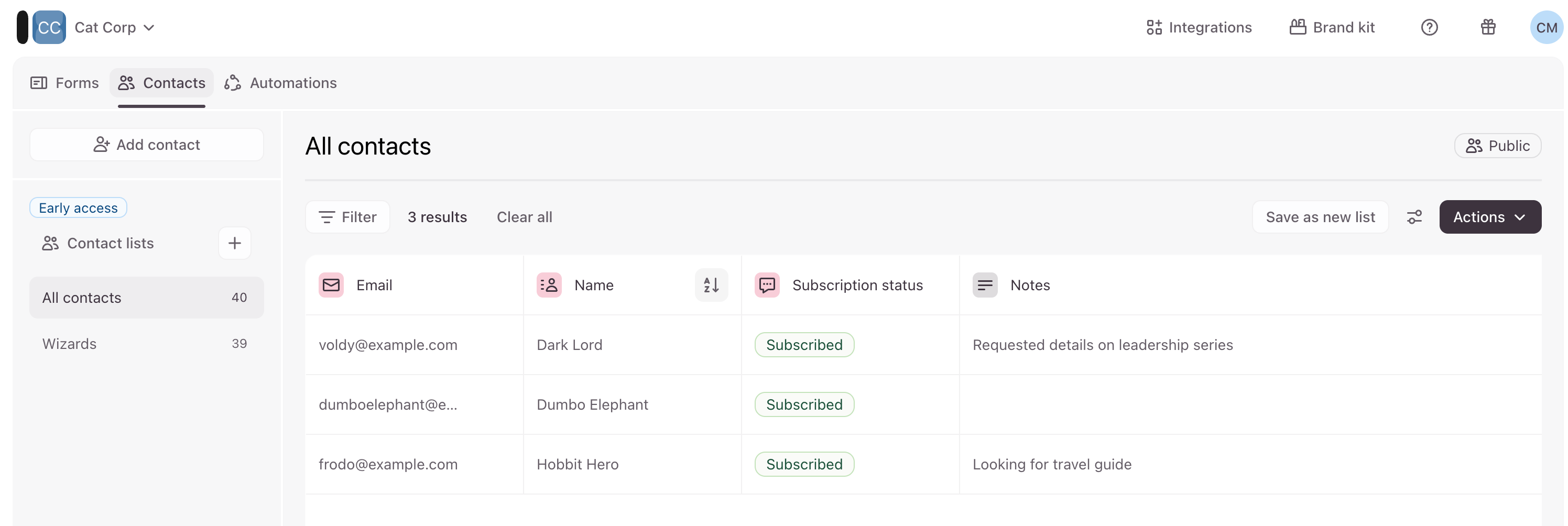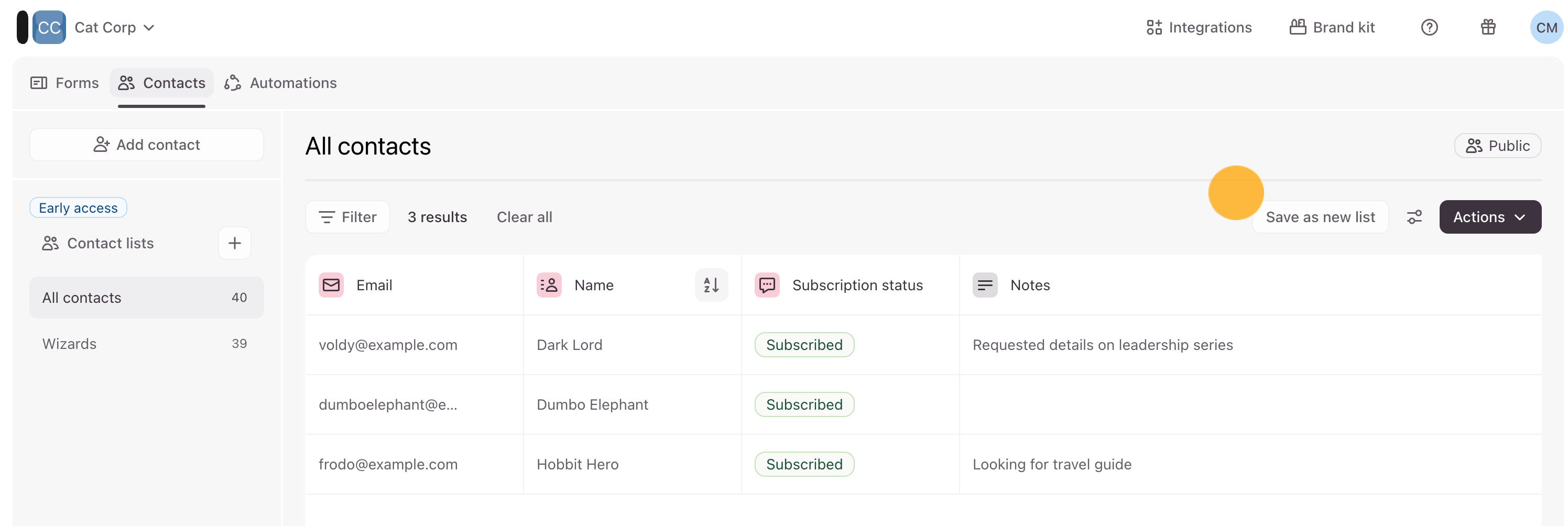 - Click Save as new list to create a new Contact list based on the filters you’ve applied.