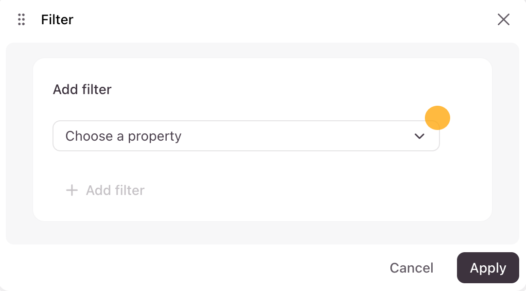 - Now you’ll see the option to choose a property from the dropdown list under Add filter.