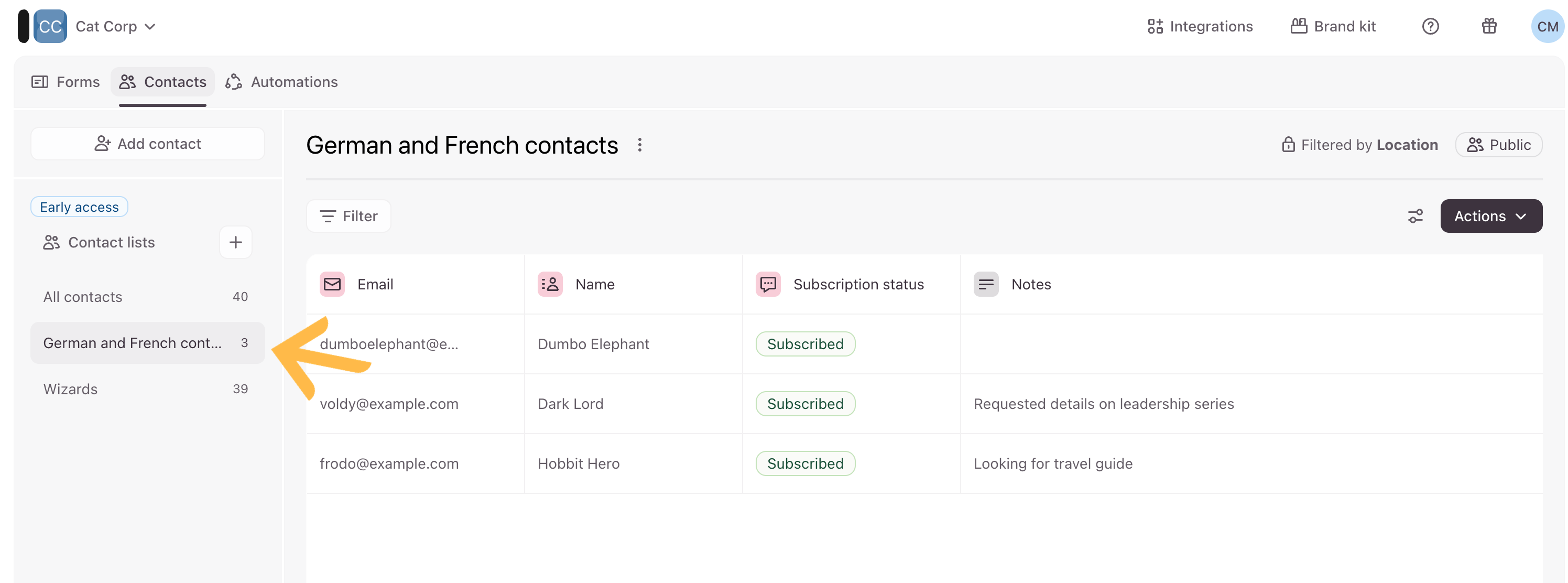 Now you’ll see that a new list called German and French contacts has been created under Contact lists on the left-hand side of your screen.