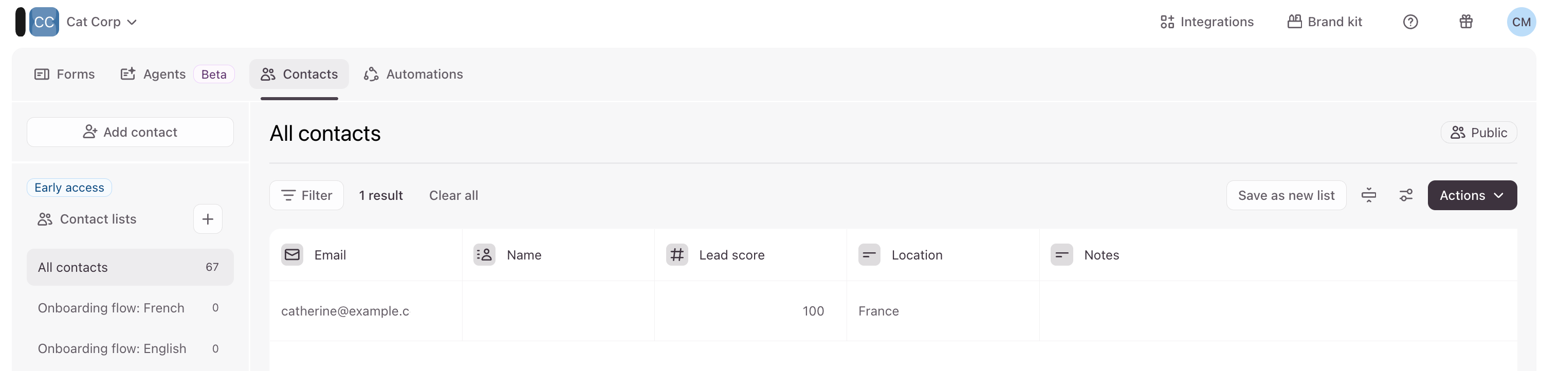 Now we'll see all our contacts who are based in France with a lead score greater than 90. In our case, that's 1 contact: