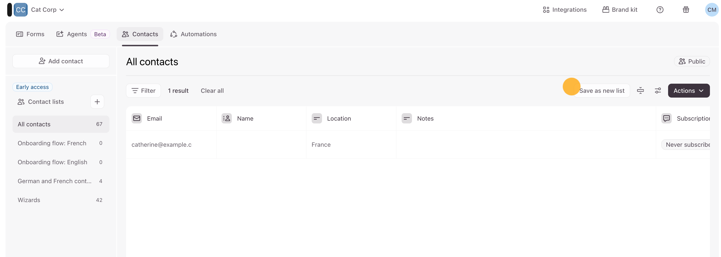 10. Click Save as new list to create a new Contact list based on the filters you’ve applied.