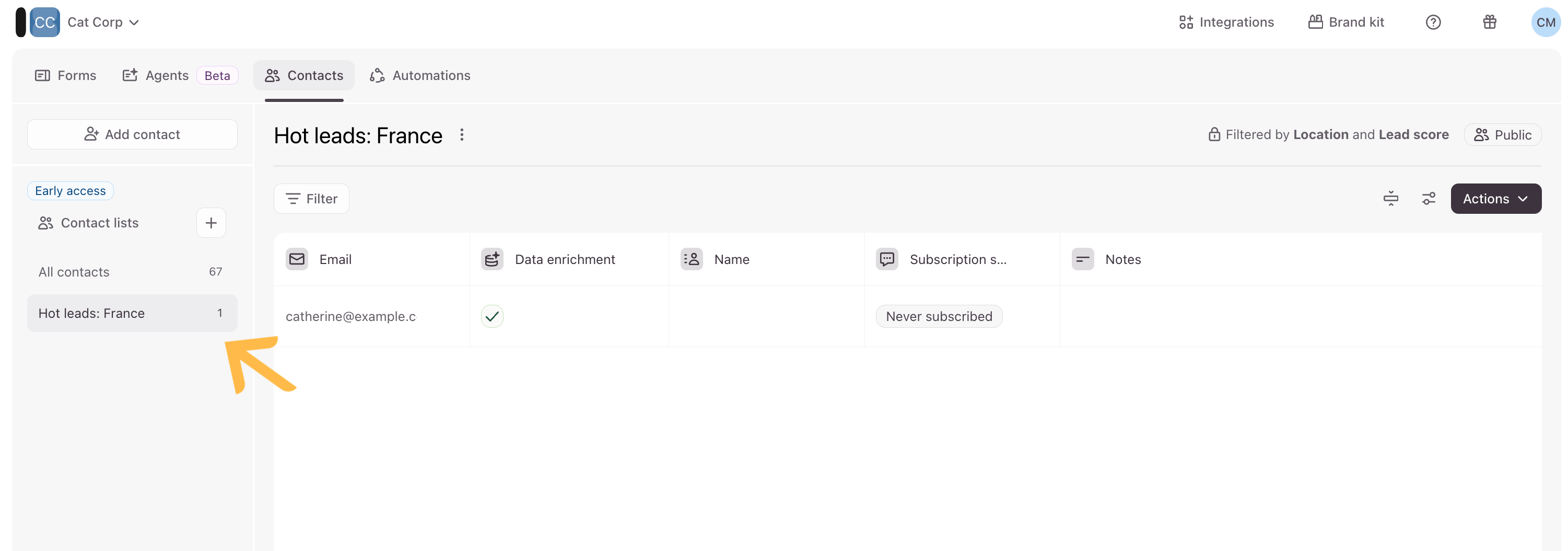 Now you’ll see that a new list called Hot leads: France has been created under Contact lists on the left-hand side of your screen.