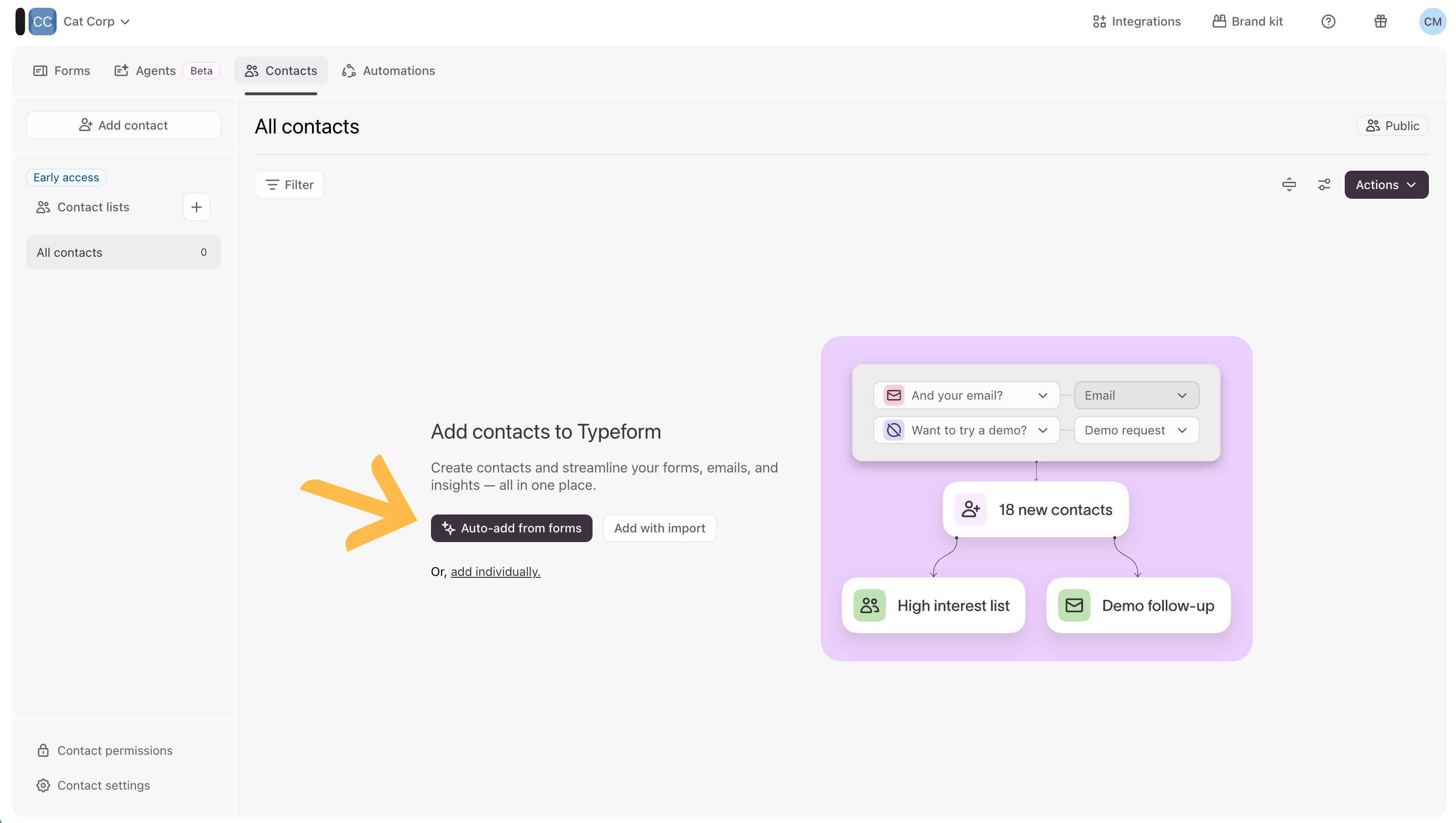 If your Contacts database is empty and your account has 5 or more forms, you’ll see an Auto-add from forms button.