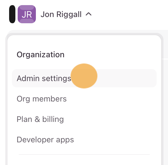 1. Open your Typeform account, and go to Admin settings, under your Organization icon in the top left corner.