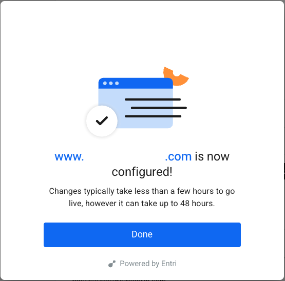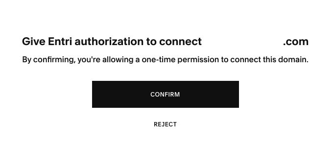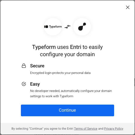 Entri is our tool for automatically setting up your domain. Click Continue.