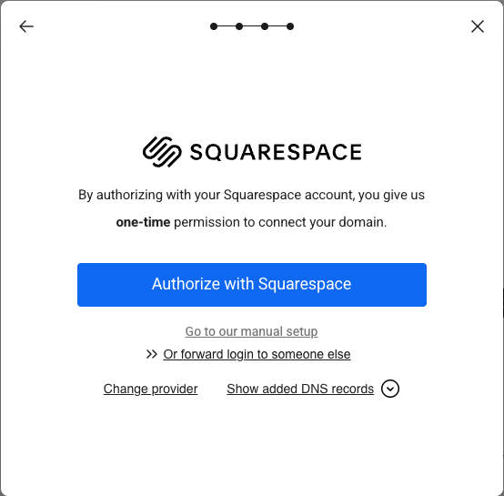 5. Once analyzed, you have to give authorization to create DNS records in your domain provider (in the below example it's Squarespace).