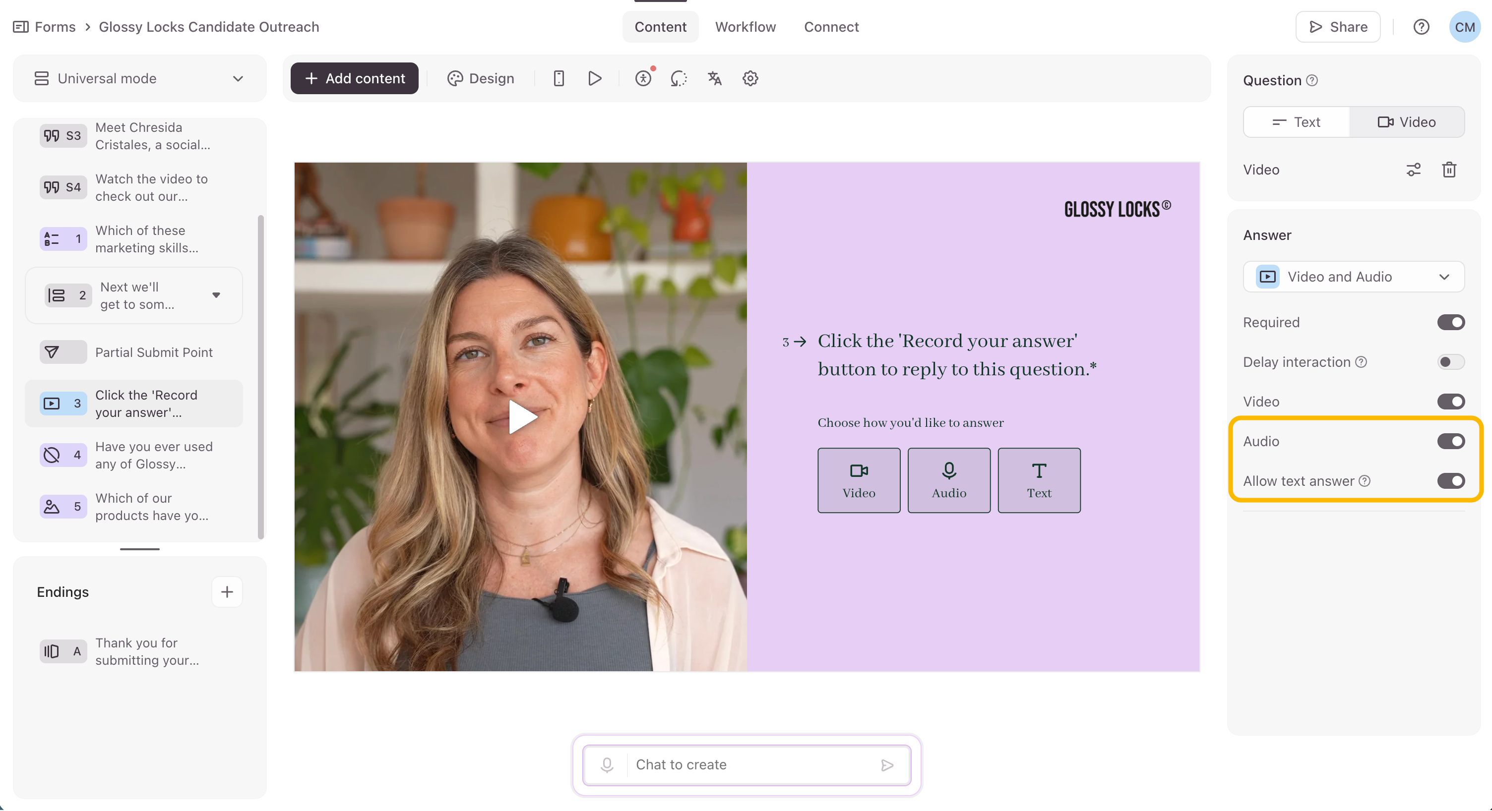 Tip! Use video questions to personalize your form, and FAQ with AI to handle common company questions automatically.