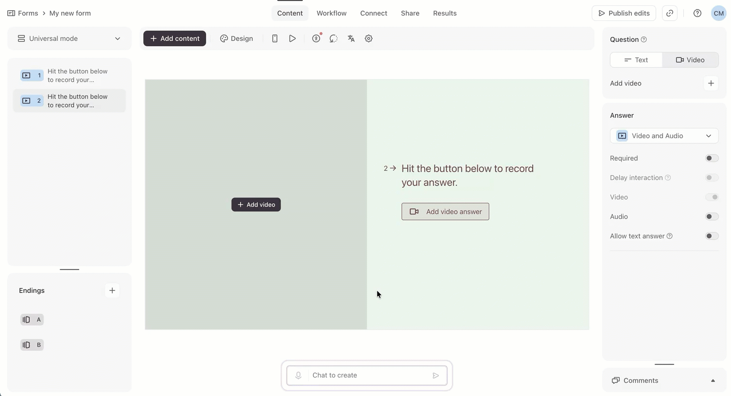 - Test your form. Preview your typeform to check how it flows, and make sure your videos look and sound good on both desktop and mobile before sharing.