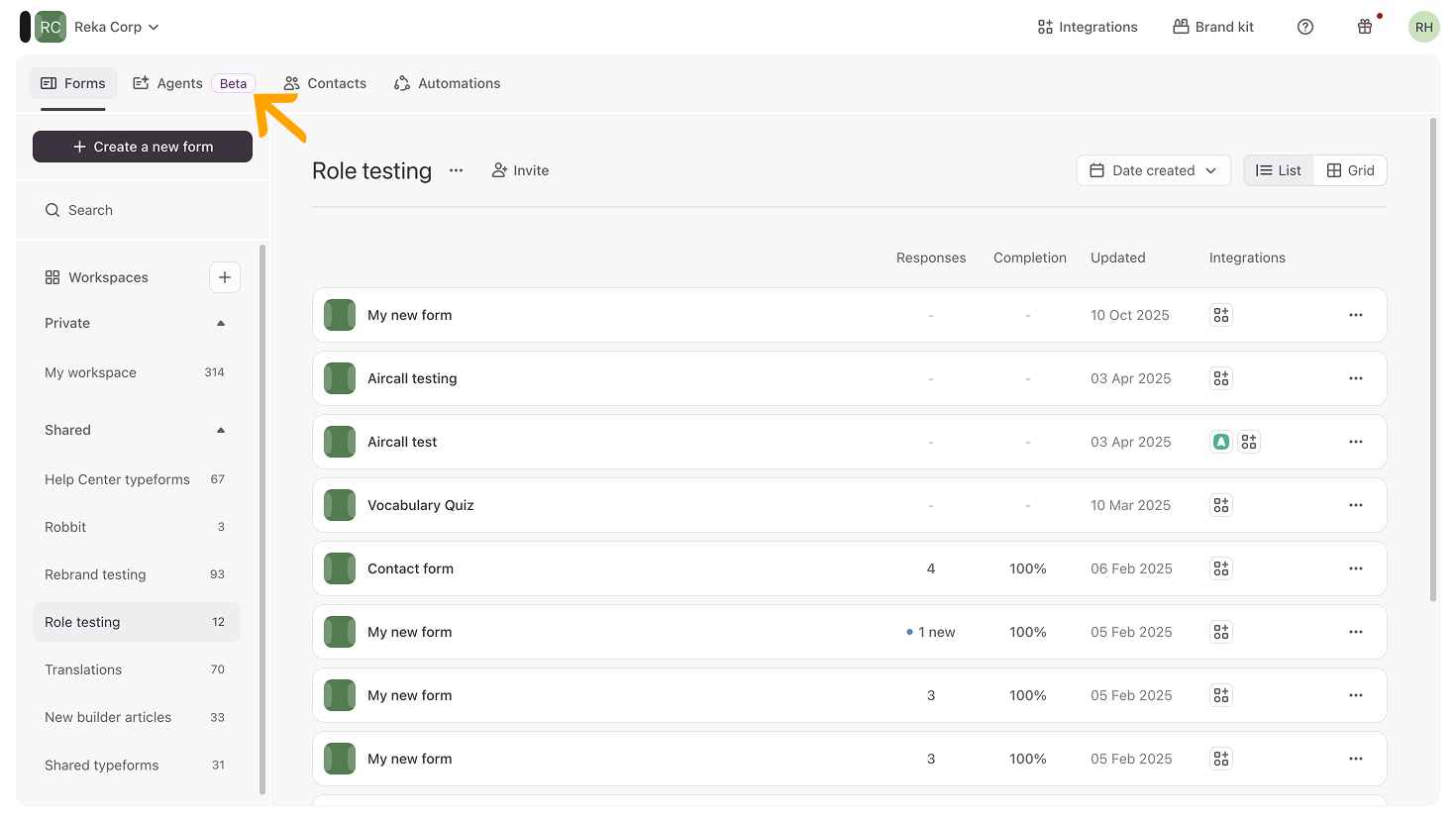 - Log into your account and click Agents (Beta) in the toolbar.