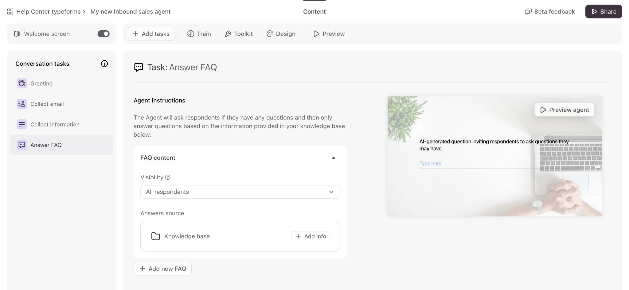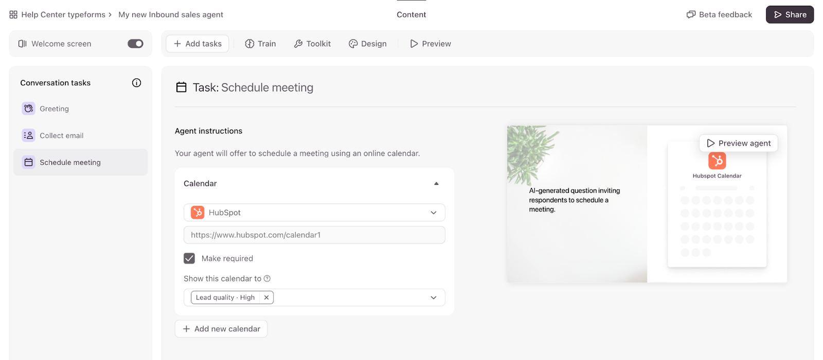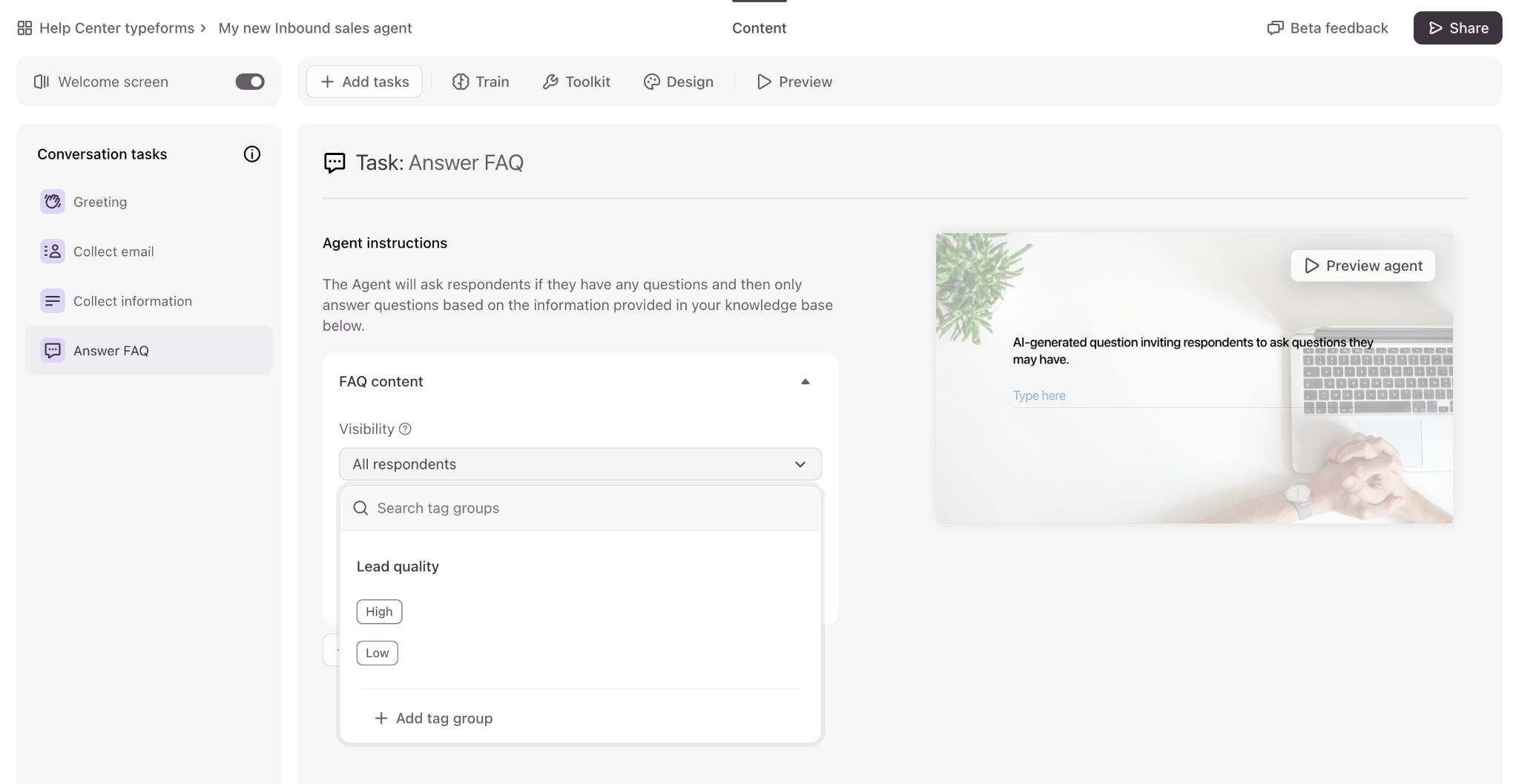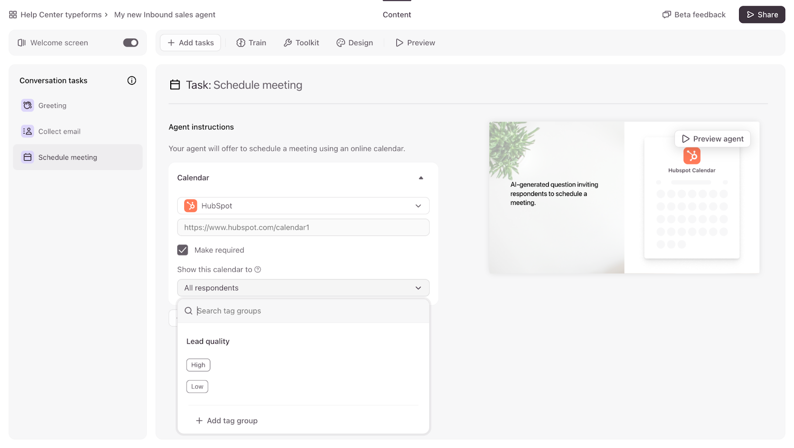Typeform’s Inbound Sales Agent is currently available to a group of Closed Beta testers. You can sign up to join the waitlist here.
