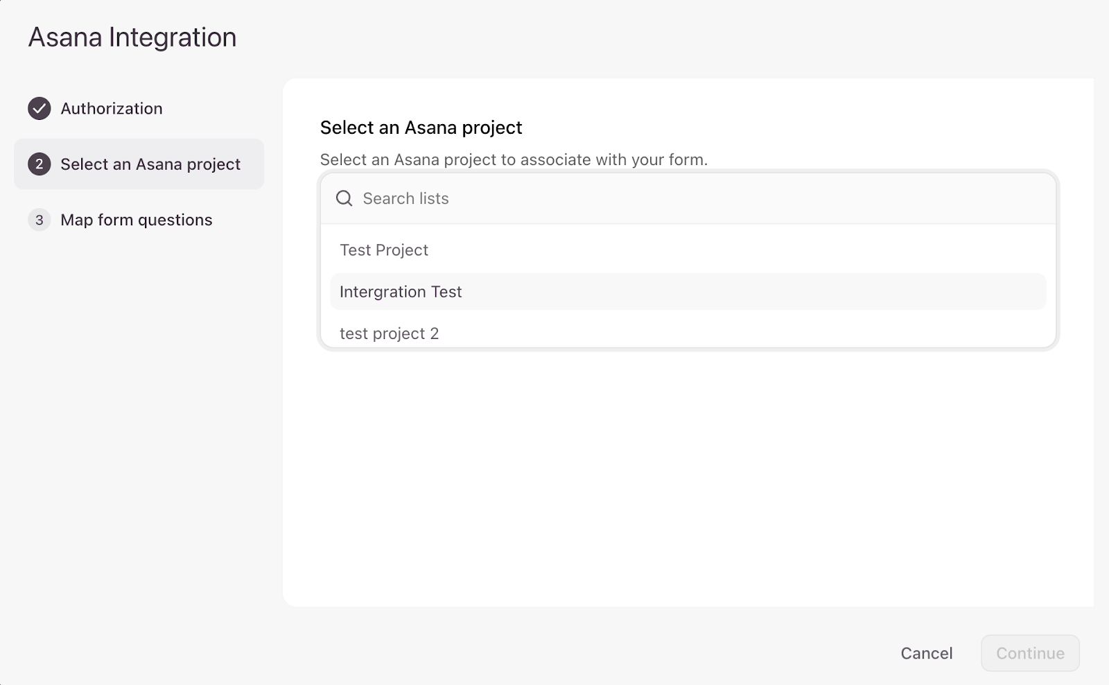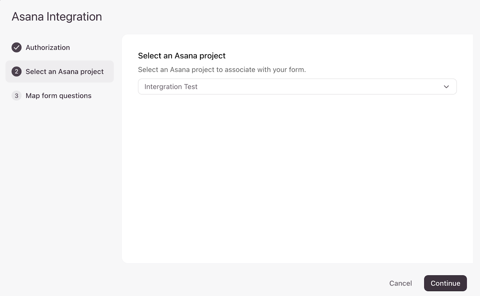- Select an Asana project from the dropdown list. Your form responses will be sent to this project.