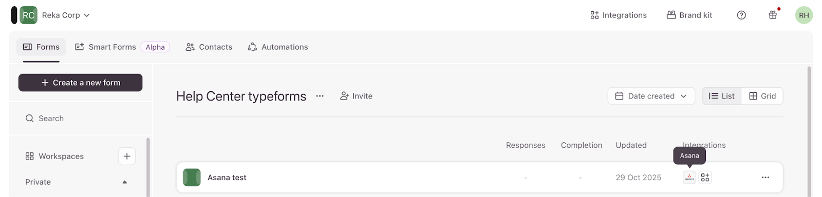 You’ll also see the Asana icon next to forms connected to Asana in your workspace.