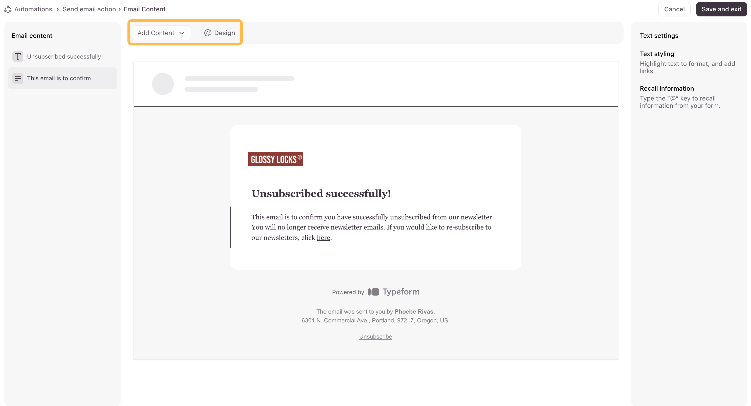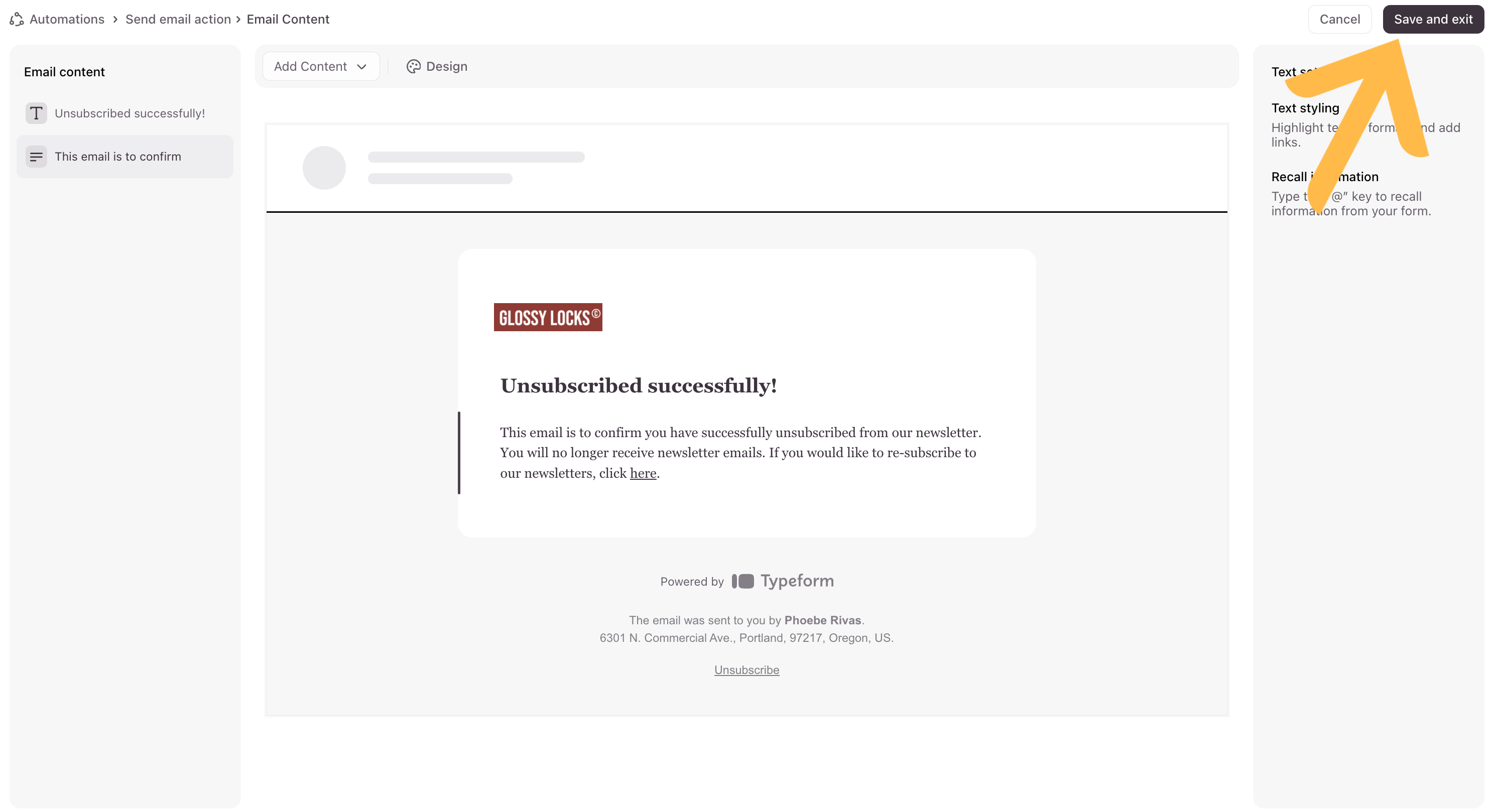 12. Click Save and exit when you’re done with customizing your email.