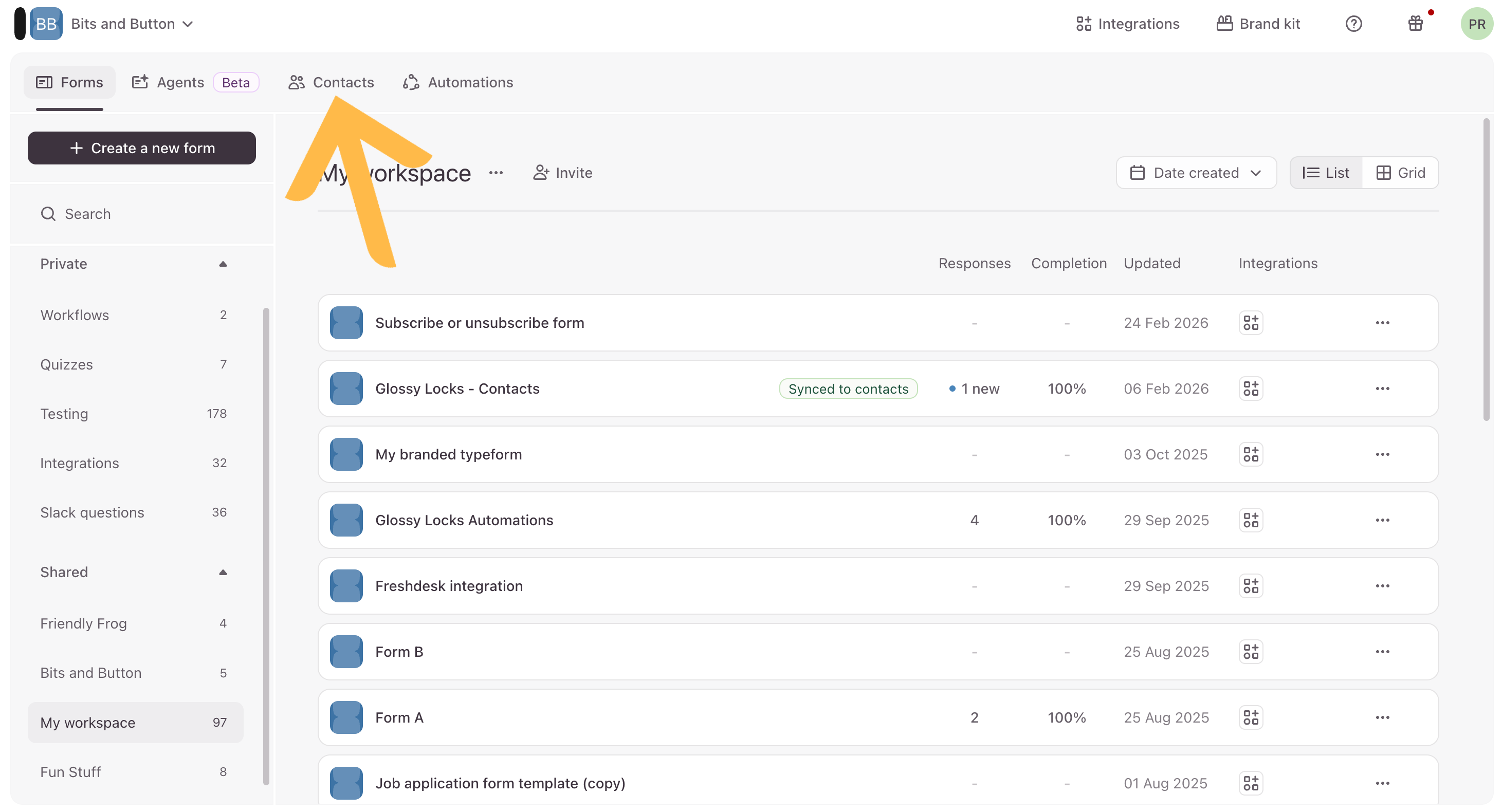 1. From your workspace, click Contacts.