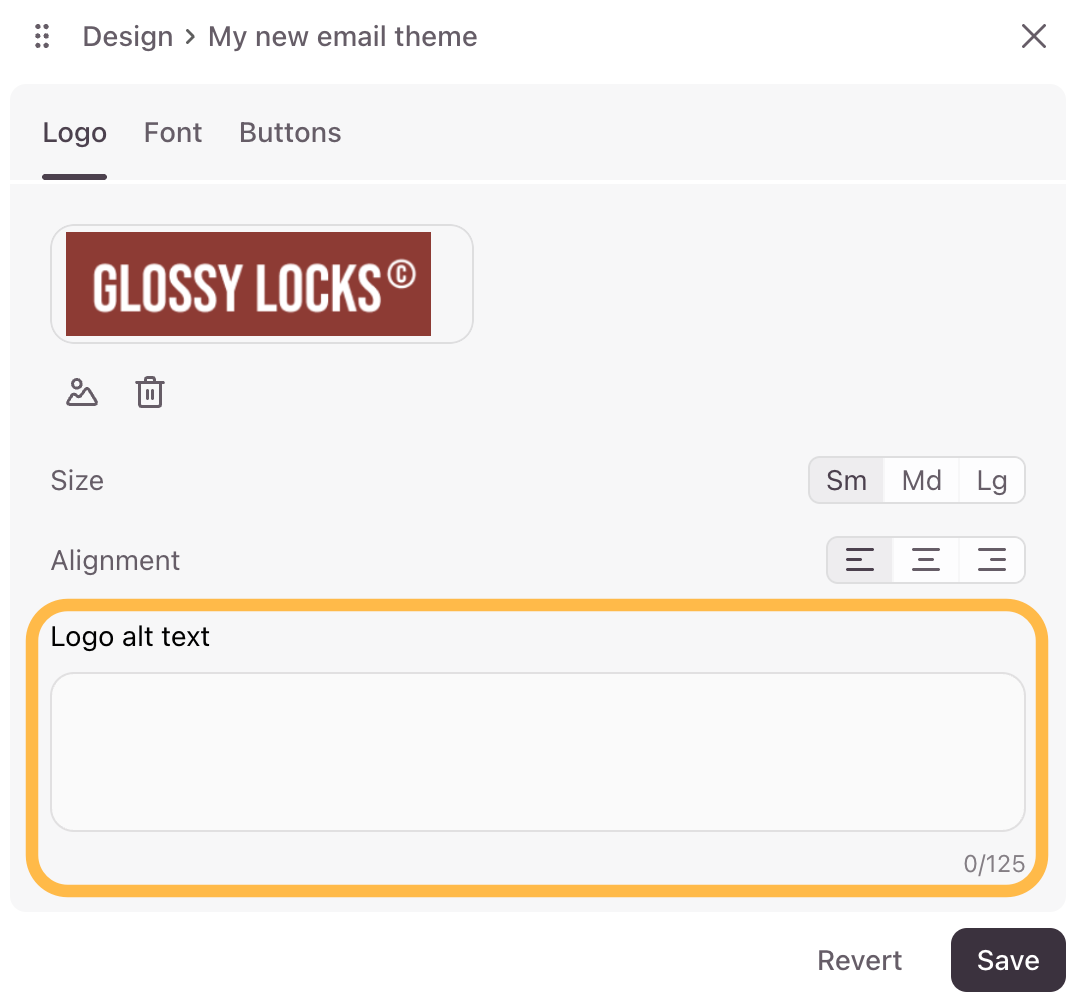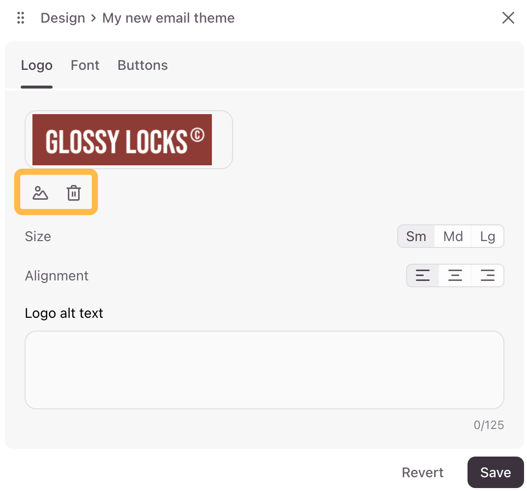 Click the picture icon to change your logo or the trash can icon to delete it.