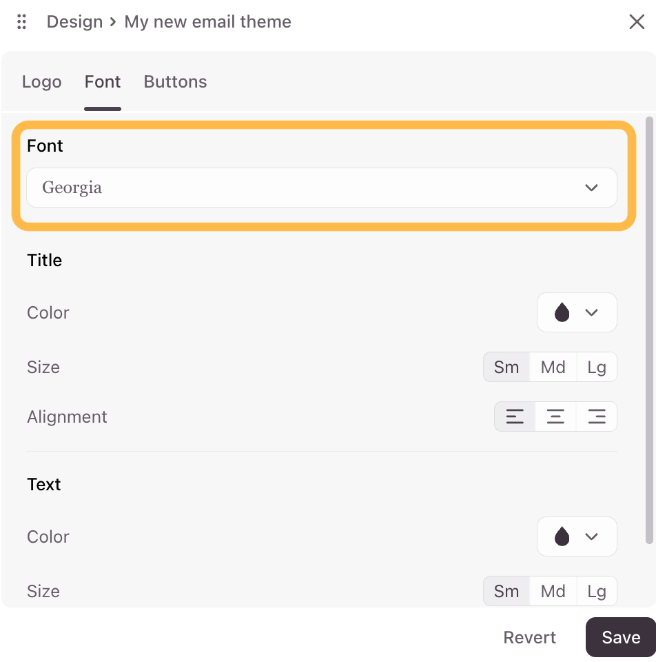 To customize the colors and font of your email, click the Design button to apply a theme to your email.