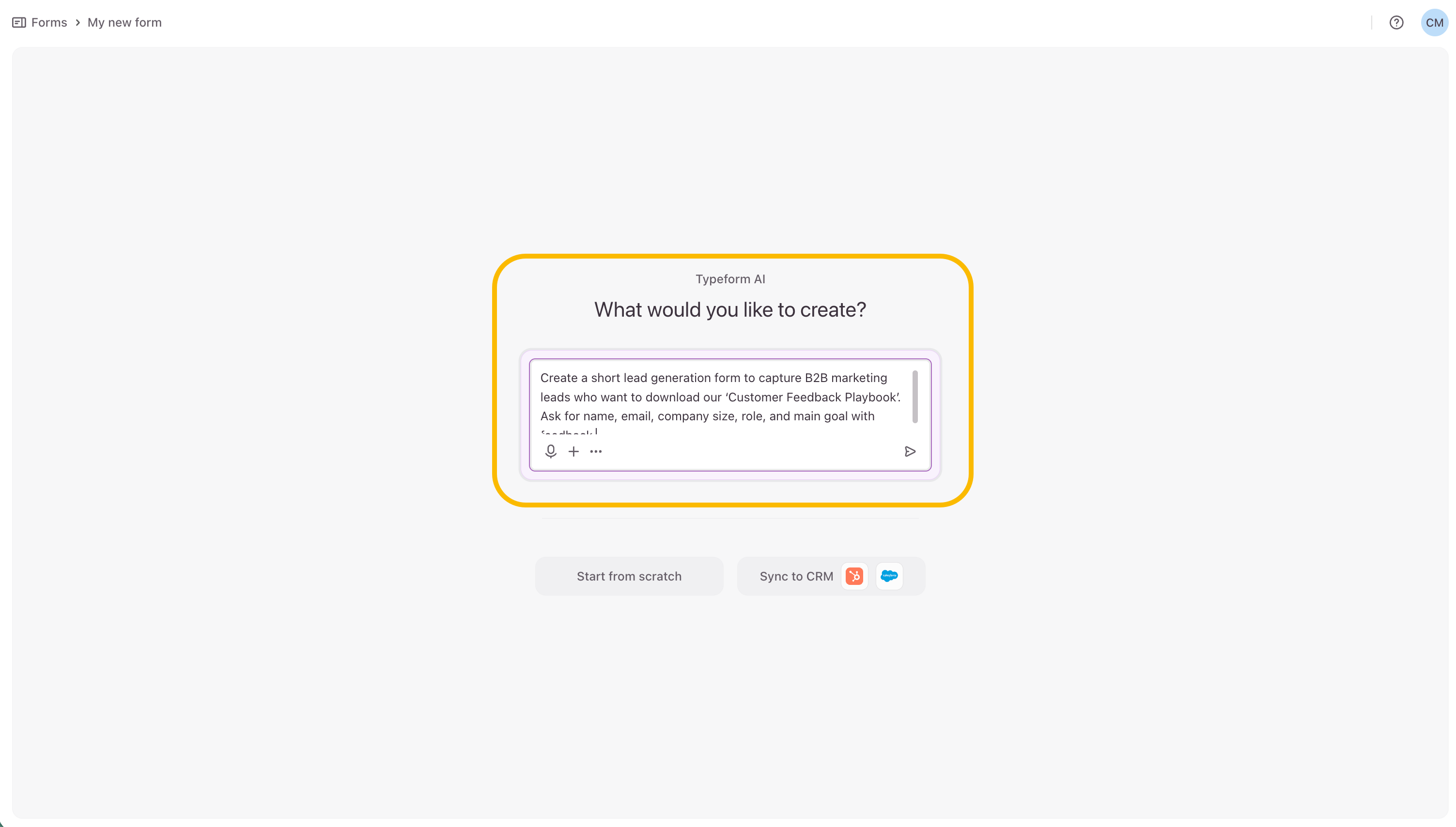 We’ll start by creating a short, high‑intent form using Typeform AI.