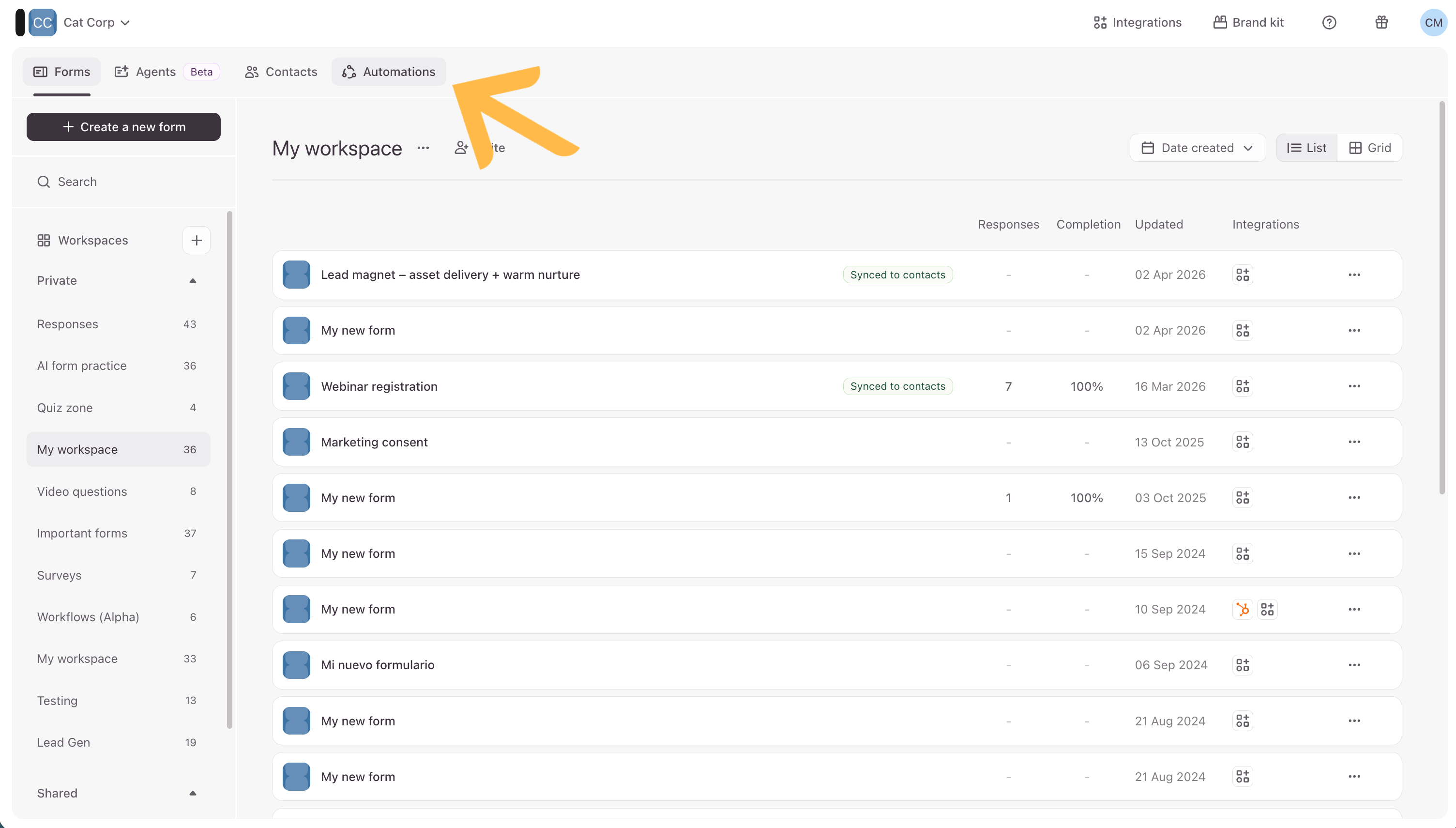 - The Contacts & Automations add‑on. Contacts is available on all Typeform plans, but you’ll need the Contacts & Automations add-on to send automated emails and notifications with Automations.