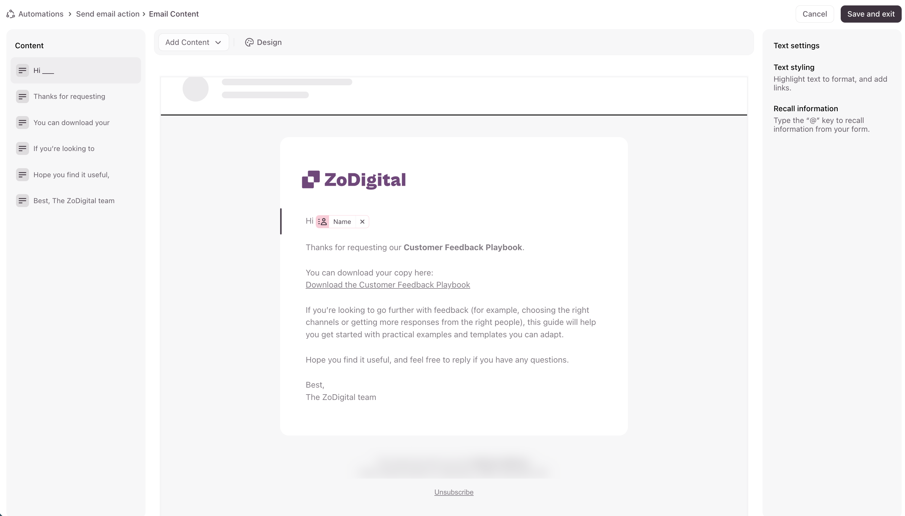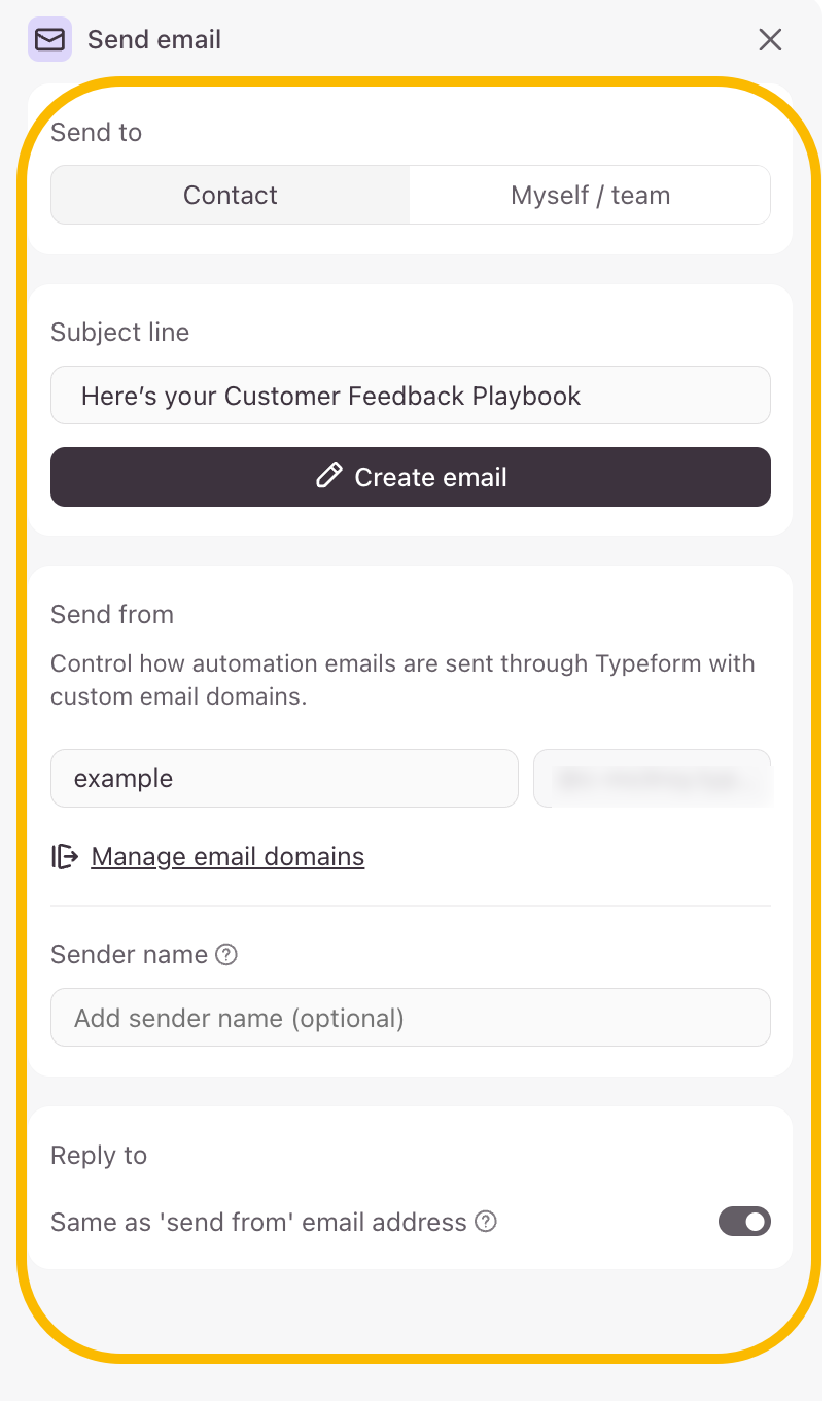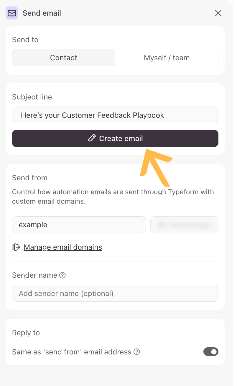 - Add a subject line, for example: Here’s your Customer Feedback Playbook
