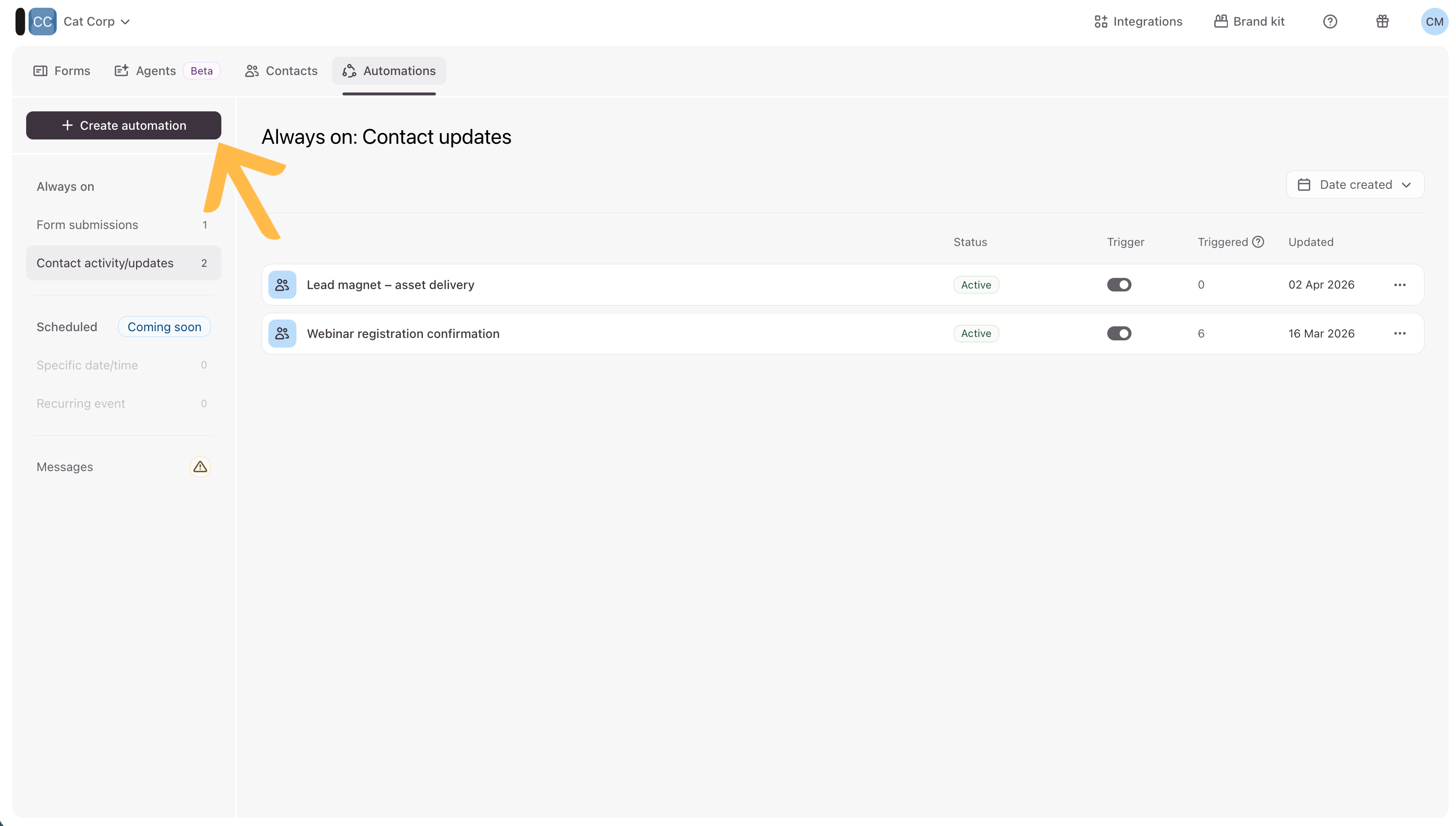 You can reflect this in Contacts by creating a Warm leads contact list based on filters. Contact lists let you group people in your Contacts database into segments you can act on in Automations.