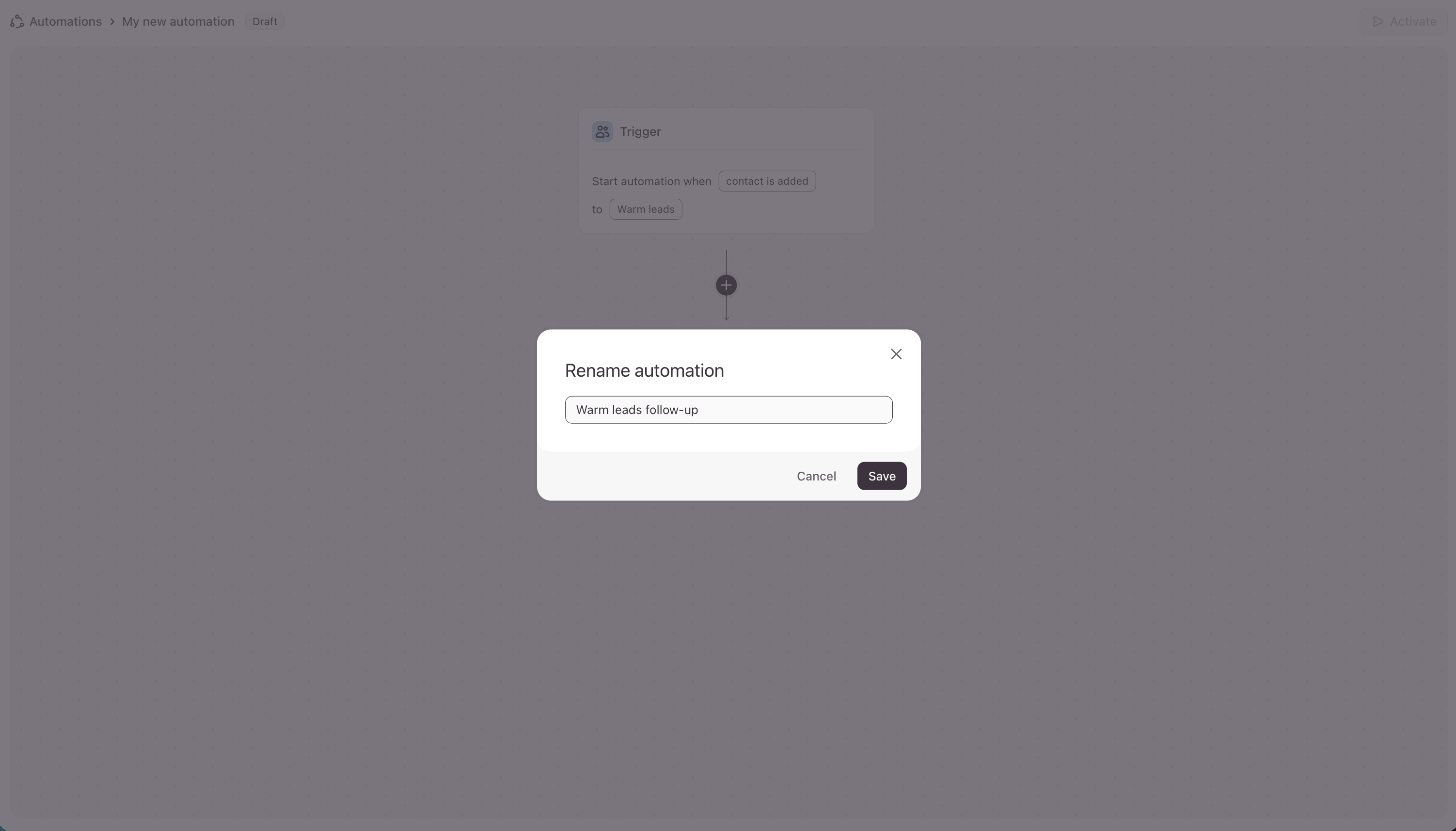 - Give your Automation a clear name by clicking the default name, My new automation, in the top-left corner.