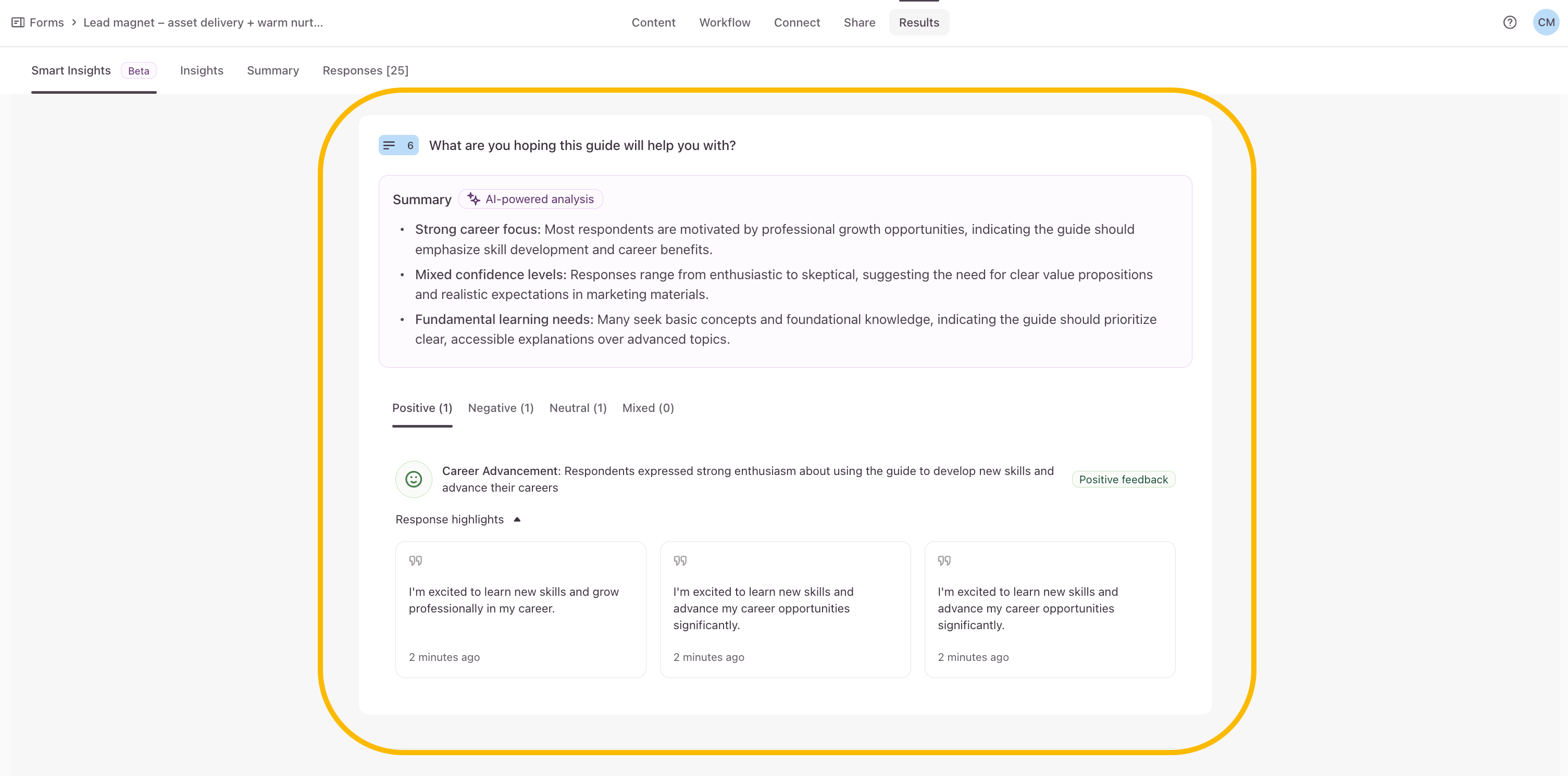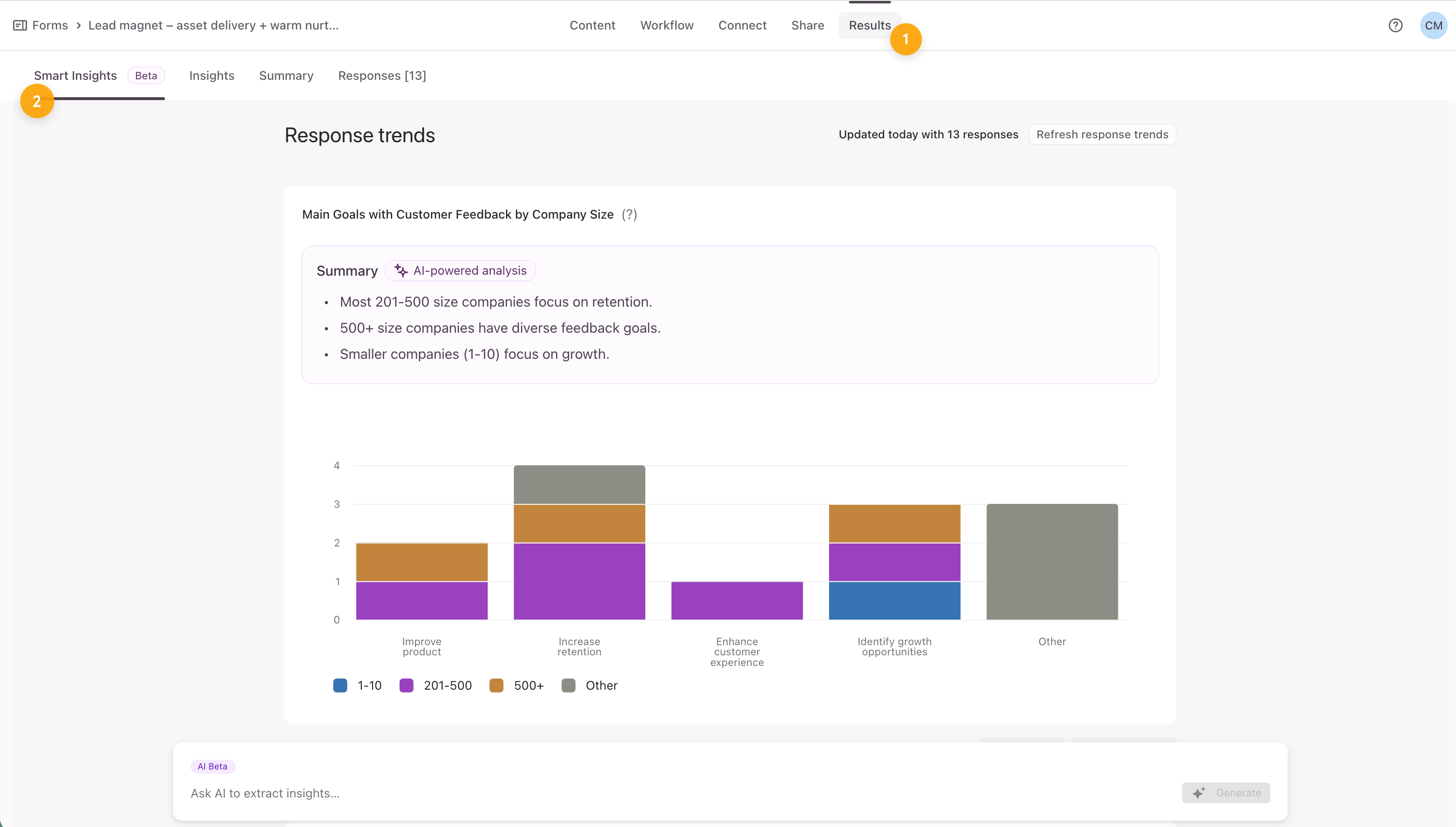 Once you’ve collected enough responses, use Smart Insights to understand how your funnel is performing and where to optimize.