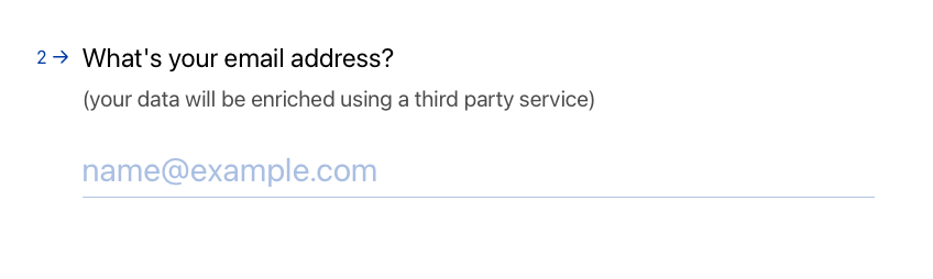3. La primera pregunta de tipo "email" tendrá la función de enriquecimiento de datos ("Data enrichment") activada, tal y como se muestra a continuación: