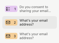 2. Ahora, añade dos preguntas de tipo "email". Una de ellas, con la función de enriquecimiento de datos ("Data enrichment") activada y la otra, con esta función desactivada.
