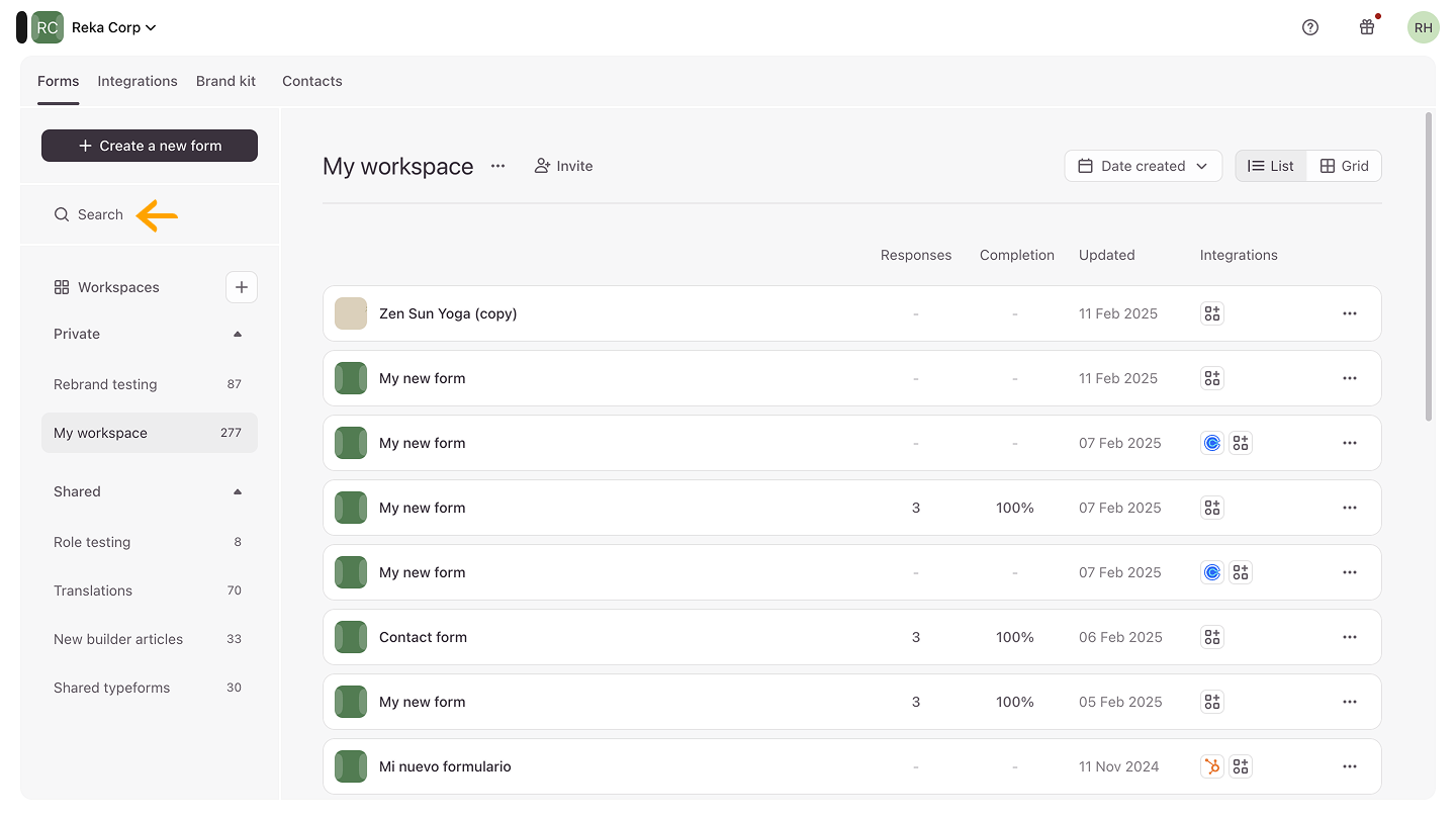 Ahora que ya conoces el nombre del formulario, puedes buscarlo en todas las áreas de trabajo a las que tengas acceso y averiguar dónde se encuentra exactamente. Para ello: