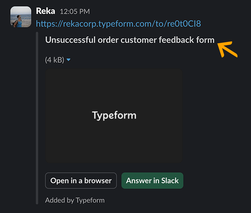 Asimismo, el nombre del formulario también aparecerá en pantalla si compartes la URL del enlace a través de una aplicación como Slack, por ejemplo.