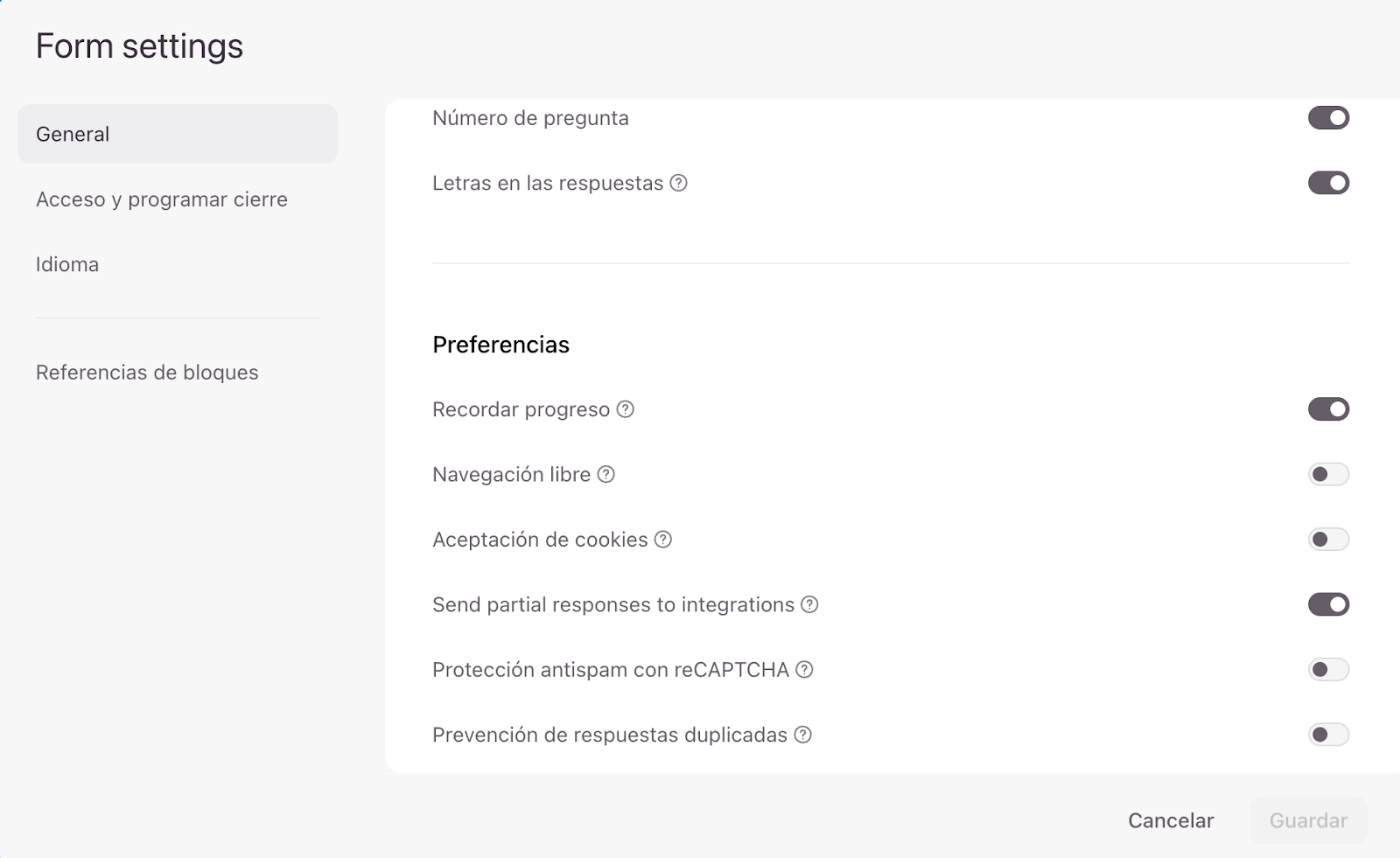 La protección mediante reCAPTCHA invisible solo está disponible en planes Typeform for Growth y Talent.