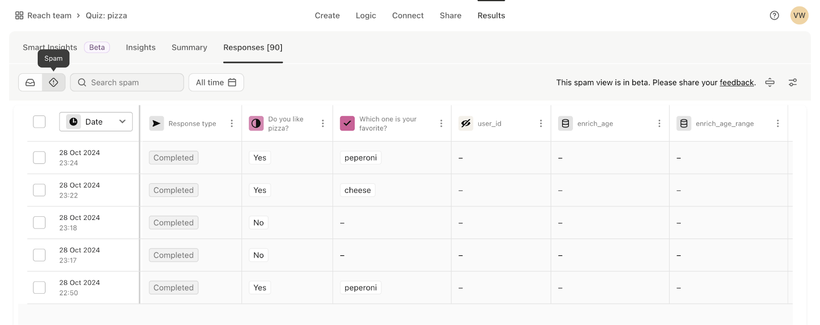 No, las respuestas de spam no se descuentan de tu límite de respuestas y tampoco se envían a través de API, webhooks o integraciones.