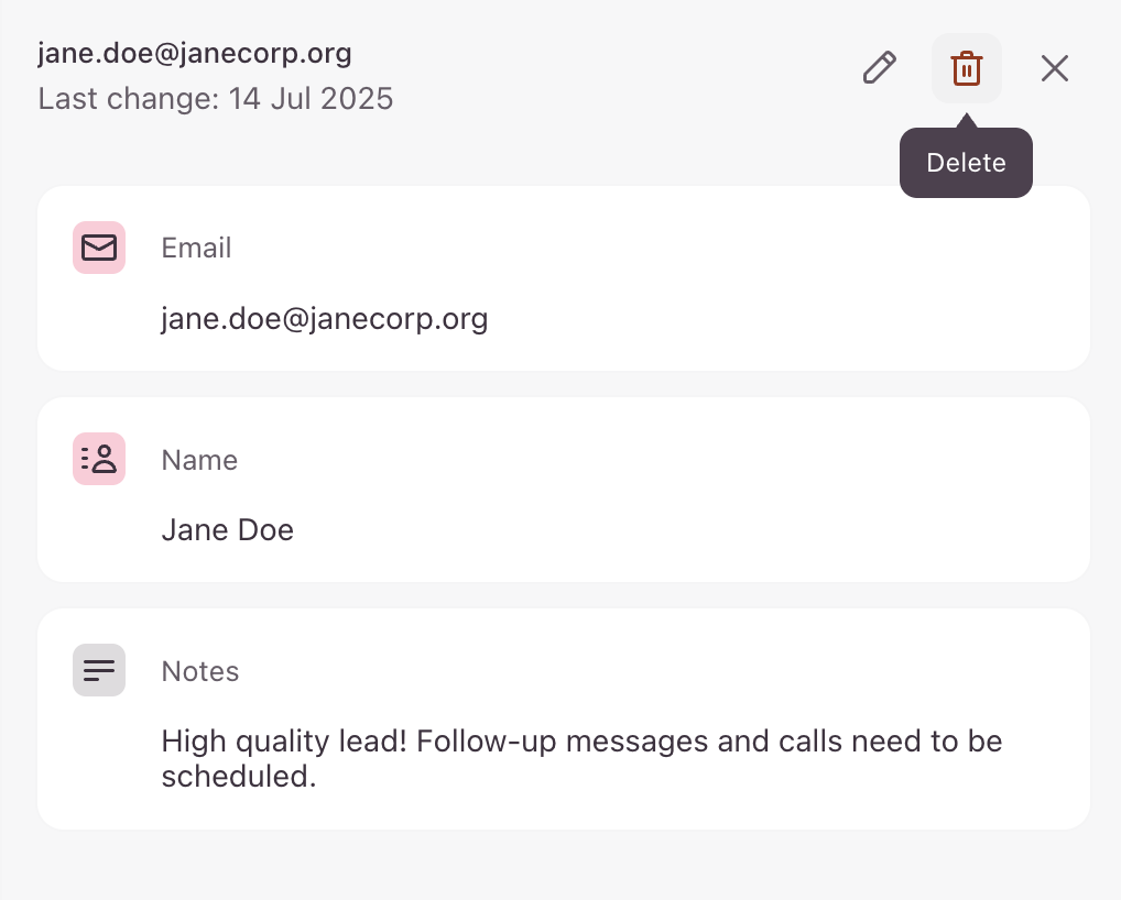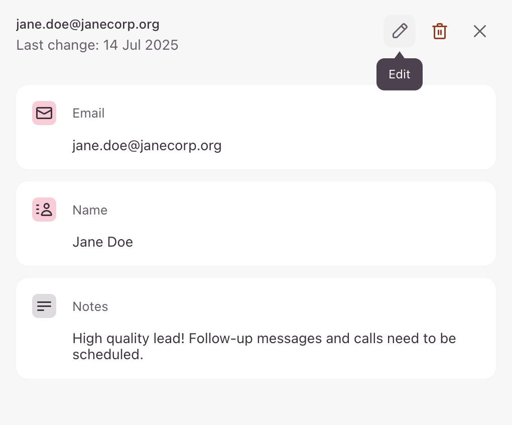- Haz clic en «Editar» (el icono en forma de lápiz) para actualizar los datos que tienes de ese contacto.