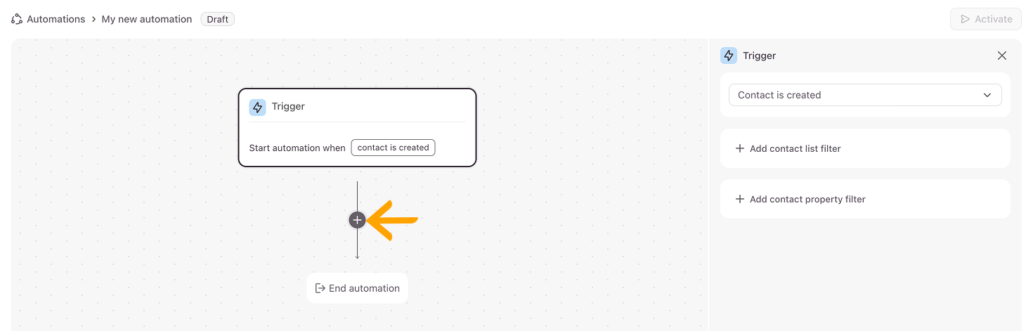 - Cuando hayas seleccionado un detonante, haz clic en el icono en forma de «+» para añadir una acción.