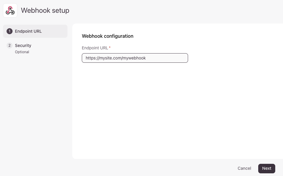 - Ahora, puedes empezar a configurar tu webhook. Para ello, introduce la URL de tu sitio web en el campo «Endpoint URL (URL del punto final)». Aquí es donde se enviará la automatización cuando se cumplan las condiciones que hayas indicado en el paso anterior al definir el detonante. Después, haz clic en el botón «Next (Siguiente)».